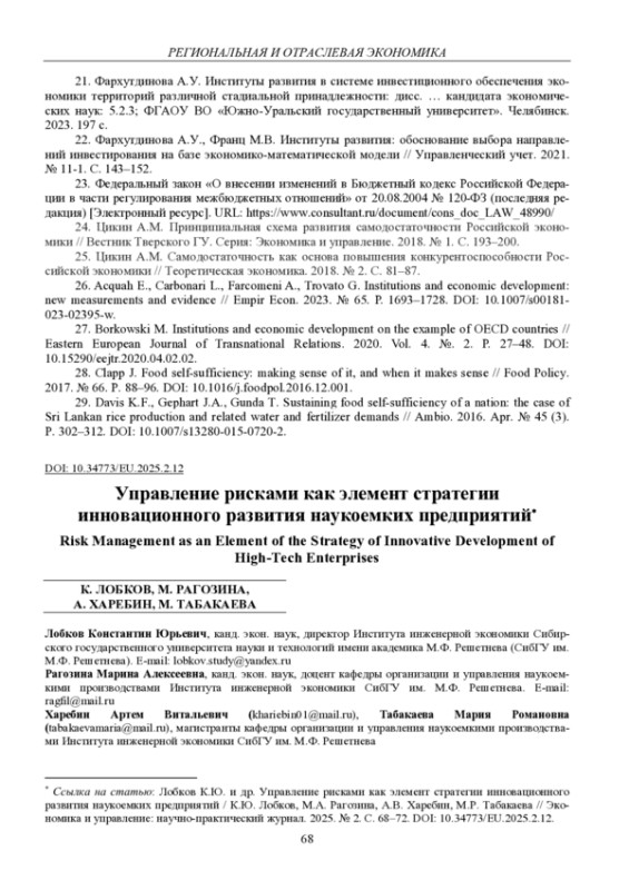 5. Менеджмент риска. Управление технико-производственными рисками промышленного предприятия [Электронный ресурс]. URL: https://files.stroyinf.ru/Data/743/74304.pdf?ysclid=m59oqyo2lr684979491.