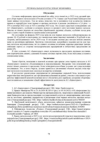 5. 	Рынок металлолома в 2025 году: итоги металлургической отрасли и перспективы ломопереработки [Электронный ресурс]. URL: https://vtorion.ru/blog/article/rynok-metalloloma-v-2025-godu-itogi-metallurgicheskoj-otrasli-i-perspektivy-lomopererabotki.