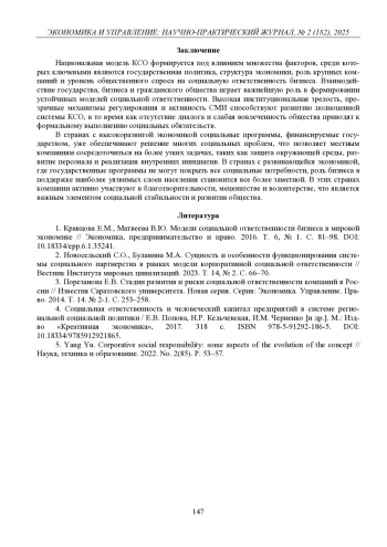 2. Новосельский С.О., Булавина М.А. Сущность и особенности функционирования системы социального партнерства в рамках модели корпоративной социальной ответственности // Вестник Института мировых цивилизаций. 2023. Т. 14, № 2. С. 66-70. EDN: MSOACZ