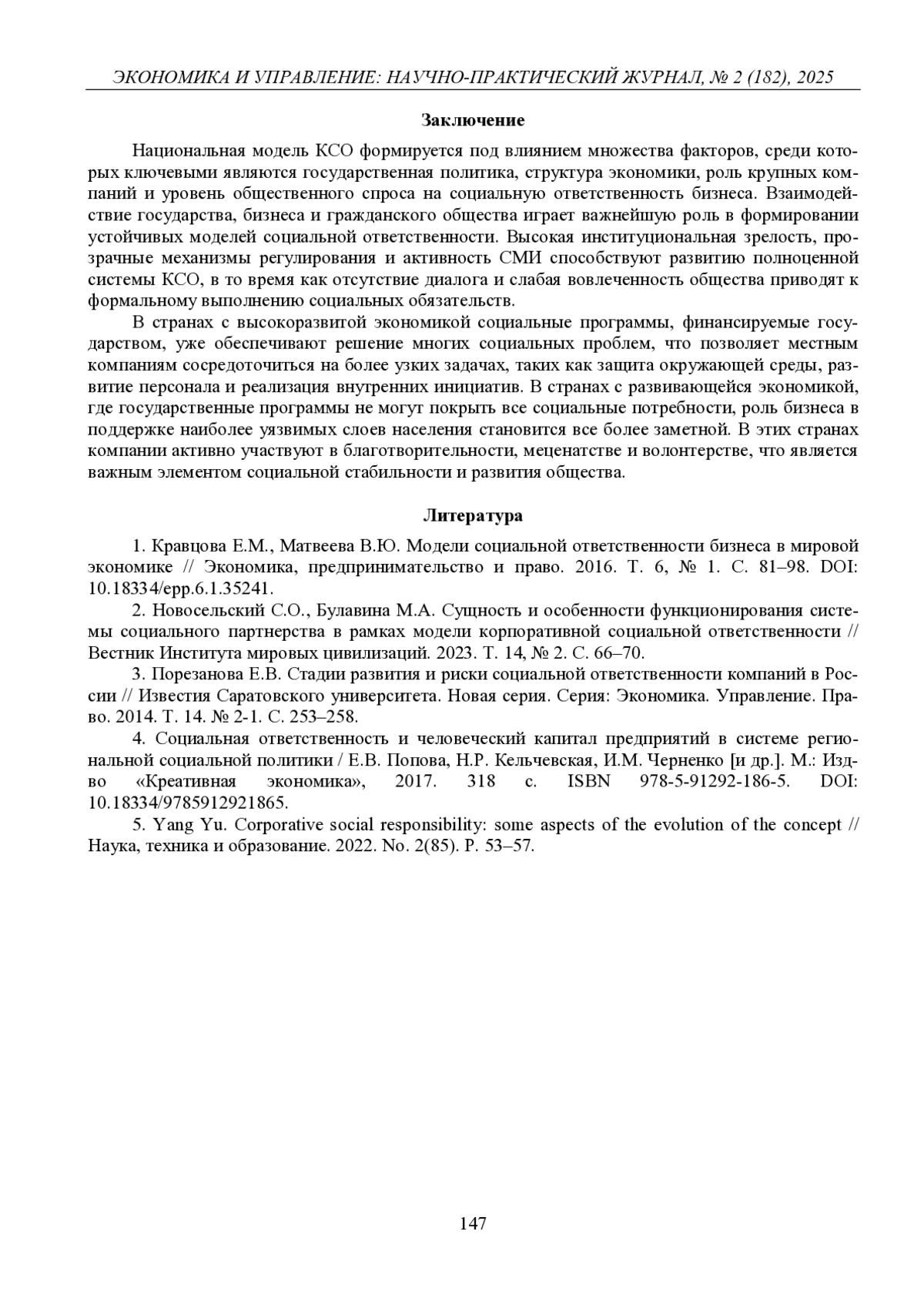 5. Yang Yu. Corporative social responsibility: some aspects of the evolution of the concept // Наука, техника и образование. 2022. No. 2(85). P. 53-57.