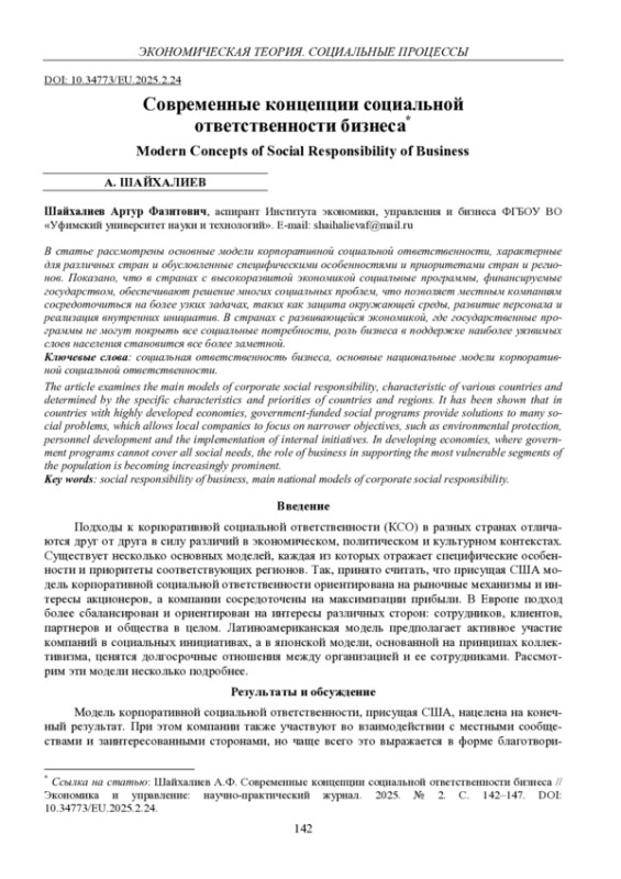 В статье рассмотрены основные модели корпоративной социальной ответственности, характерные для различных стран и обусловленные специфическими особенностями и приоритетами стран и регионов. Показано, что в странах с высокоразвитой экономикой социальные программы, финансируемые государством, обеспечивают решение многих социальных проблем, что позволяет местным компаниям сосредоточиться на более узких задачах, таких как защита окружающей среды, развитие персонала и реализация внутренних инициатив. В странах с развивающейся экономикой, где государственные программы не могут покрыть все социальные потребности, роль бизнеса в поддержке наиболее уязвимых слоев населения становится все более заметной