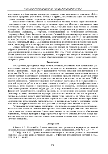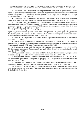 2. Гайфуллин А.Ю. Профессиональные ориентиры и карьерные установки современной учащейся молодежи: социологический анализ // Уфимский гуманитарный научный форум. 2023. № 3. С. 140-150.