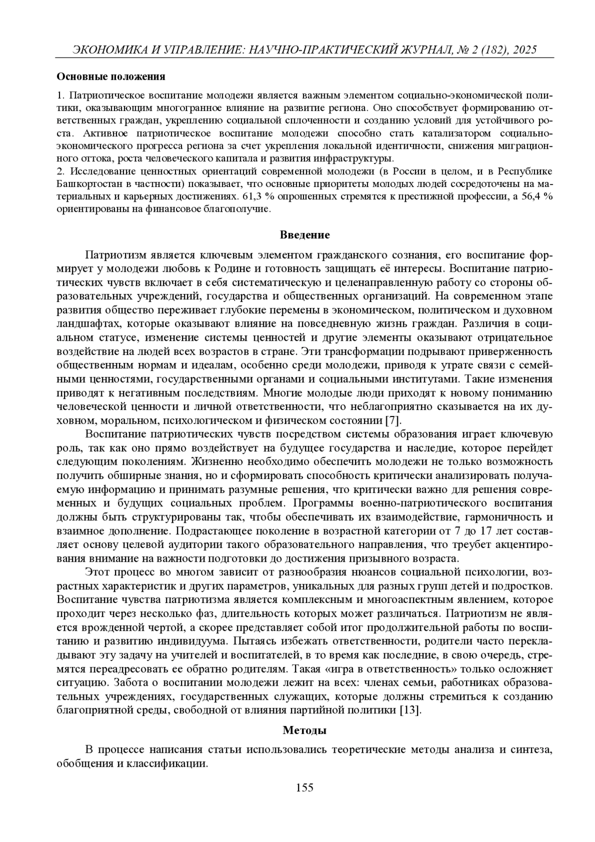 4. Гайфуллин А.Ю. Ценностные ориентации и жизненные цели современной молодежи Республики Башкортостан// Уфимский гуманитарный научный форум. 2022. № 1. С. 120-127. EDN: CVTYGQ