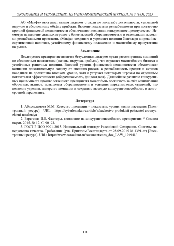 САЙФУТДИНОВА (. Л., НИГМАТУЛЛИНА (. Г., ХАБИБОВ И. С. МЕТОДОЛОГИЧЕСКИЕ АСПЕКТЫ ОЦЕНКИ КАЧЕСТВА И КОНКУРЕНТОСПОСОБНОСТИ ПРОДУКЦИИ В СОВРЕМЕННЫХ ОРГАНИЗАЦИЯХ // ЭКОНОМИКА И УПРАВЛЕНИЕ: НАУЧНО-ПРАКТИЧЕСКИЙ ЖУРНАЛ. 2025. № 3 (183)