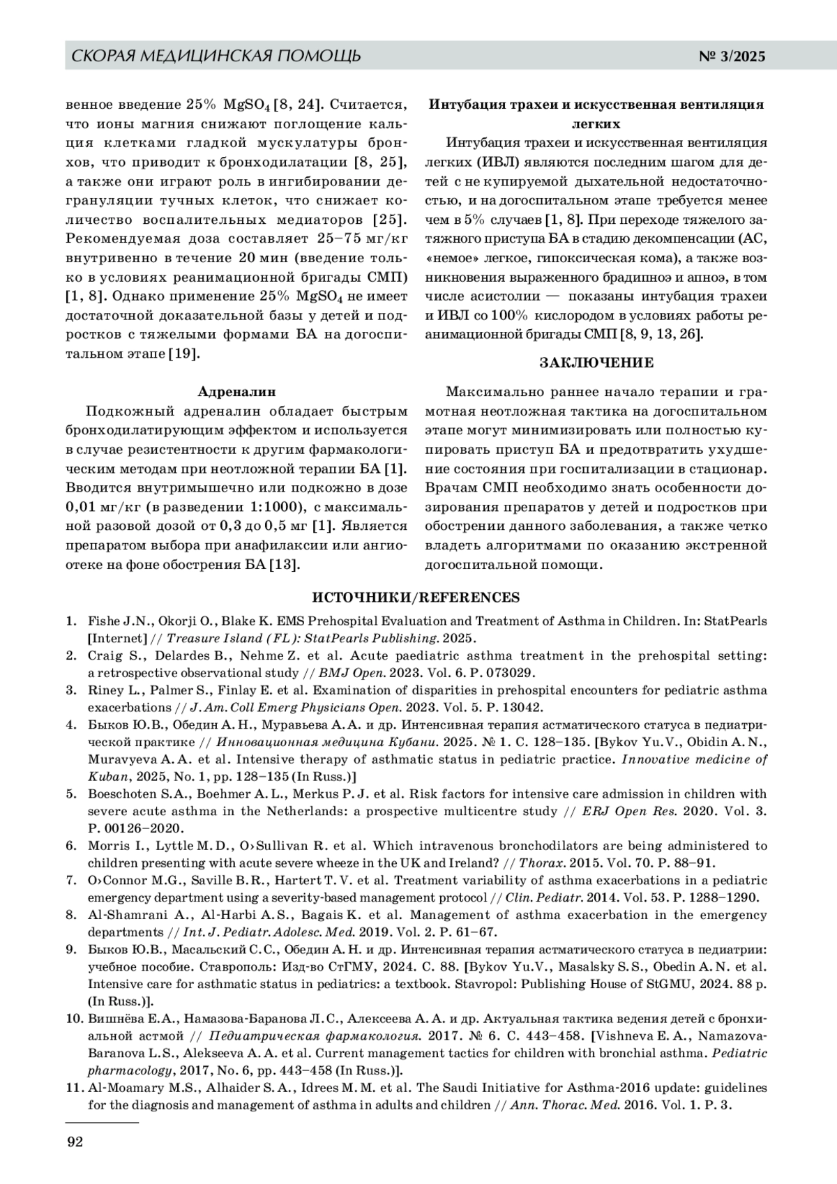 1. Fishe J.N., Okorji O., Blake K. EMS Prehospital Evaluation and Treatment of Asthma in Children. In: StatPearls [Internet] // Treasure Island (FL): StatPearls Publishing. 2025.