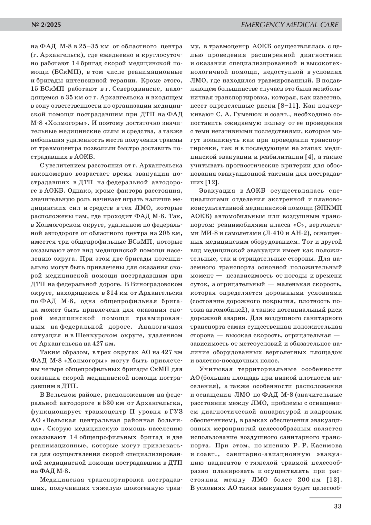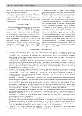 5. 	Баранов А. В. Межбольничная медицинская эвакуация пострадавших в дорожно-транспортных происшествиях на федеральной автодороге М-8 “Холмогоры” в Архангельской области // Медицина катастроф. 2020. № 4. С. 66-69.