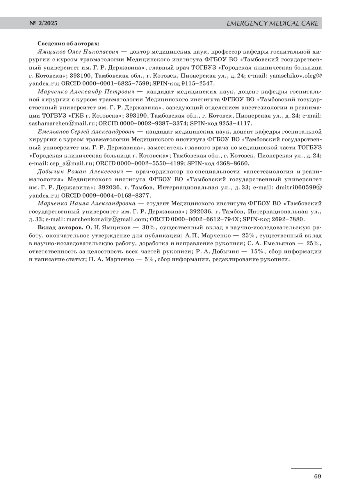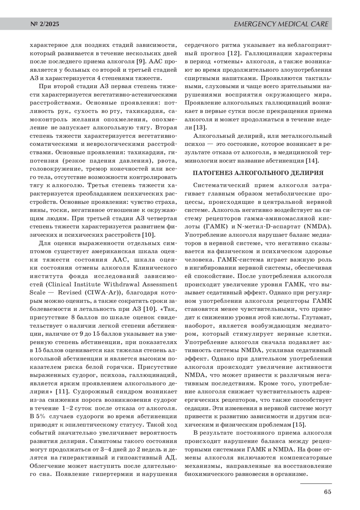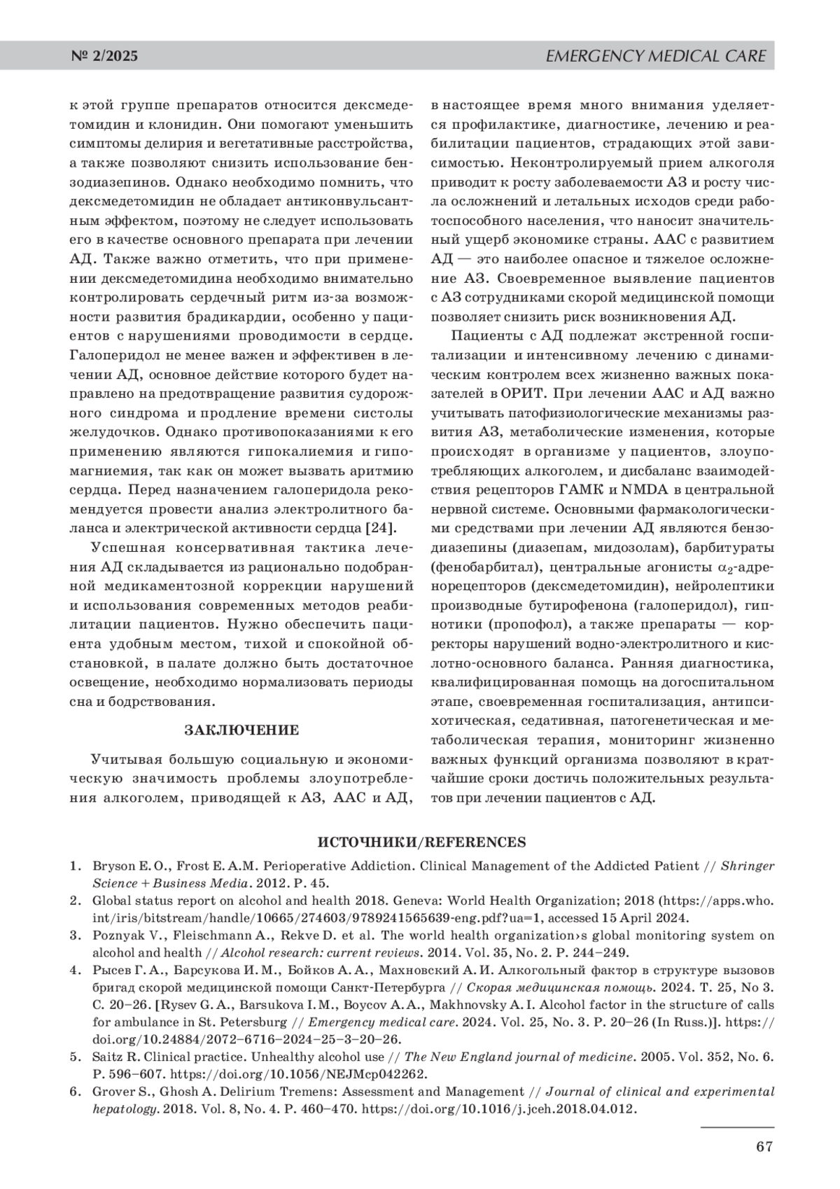 ЯМЩИКОВ О. Н., МАРЧЕНКО А. П., ЕМЕЛЬЯНОВ С. А., ДОБЫЧИН Р. А., МАРЧЕНКО Н. А. ЛЕЧЕНИЕ АЛКОГОЛЬНОГО ДЕЛИРИЯ // СКОРАЯ МЕДИЦИНСКАЯ ПОМОЩЬ. 2025. № 2, ТОМ 26