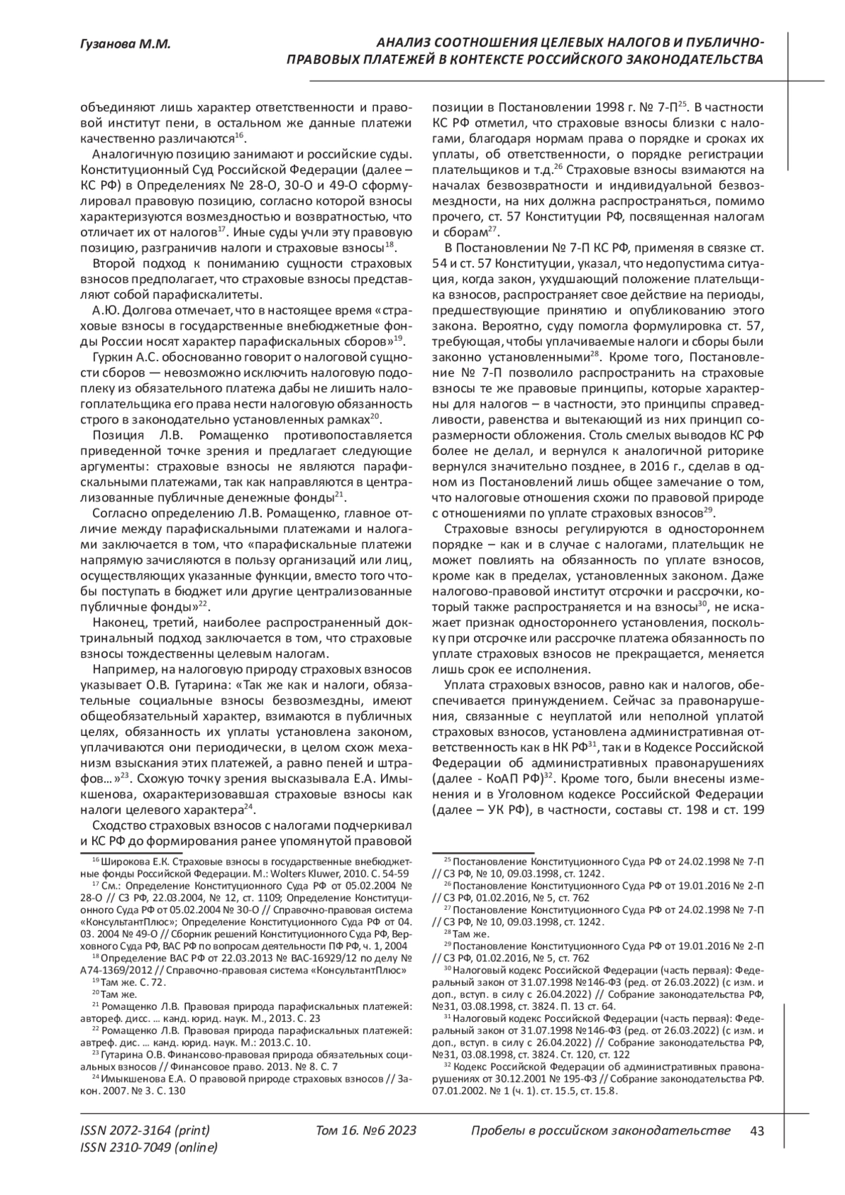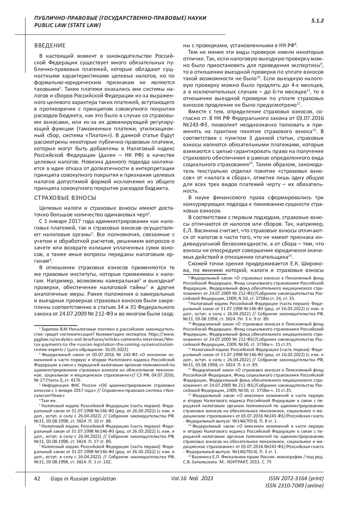 4. 	Гутарина О.В. Финансово-правовая природа обязательных социальных взносов // Финансовое право. 2013. № 8. С. 7. EDN: QZMNZD