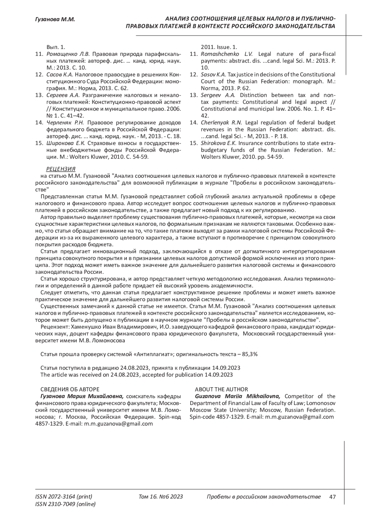 11. 	Ромащенко Л.В. Правовая природа парафискальных платежей: автореф. дис. … канд. юрид. наук. М.: 2013. С. 10. EDN: SVGSCT
