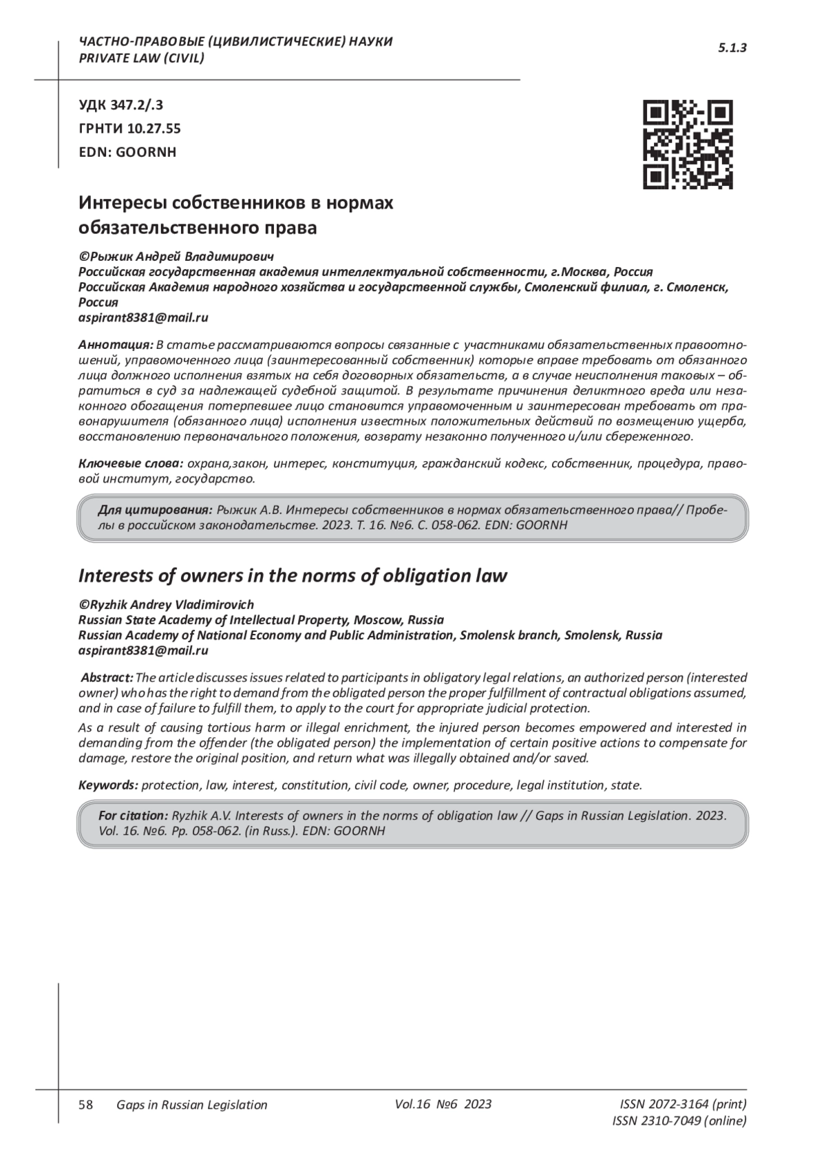 В статье рассматриваются вопросы формирования и реализации законных интересов собственников способы, приемы, методы, направленные на, реализацию и защиту законных интересов собственников. Важнейшее место среди них занимают приемы (методы), (включая методы дозволения, запрета и ограничений), нормы объективного права, институт права собственности, гражданско-правовая отрасль «вещное право» и иные отрасли гражданского права, вещные, обязательственные и иные правоотношения, субъективные права и юридические обязанности, договоры, соглашения об осуществлении корпоративных прав, имущество (вещи), их правовые режимы, правовой статус собственников.