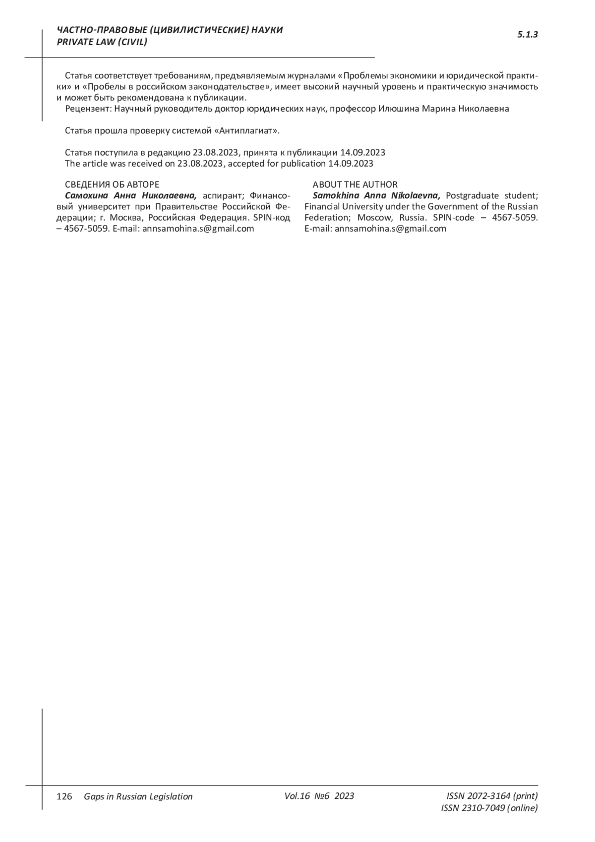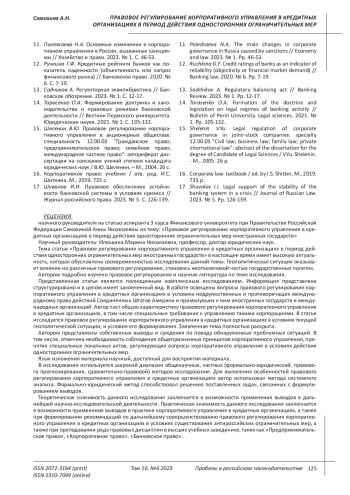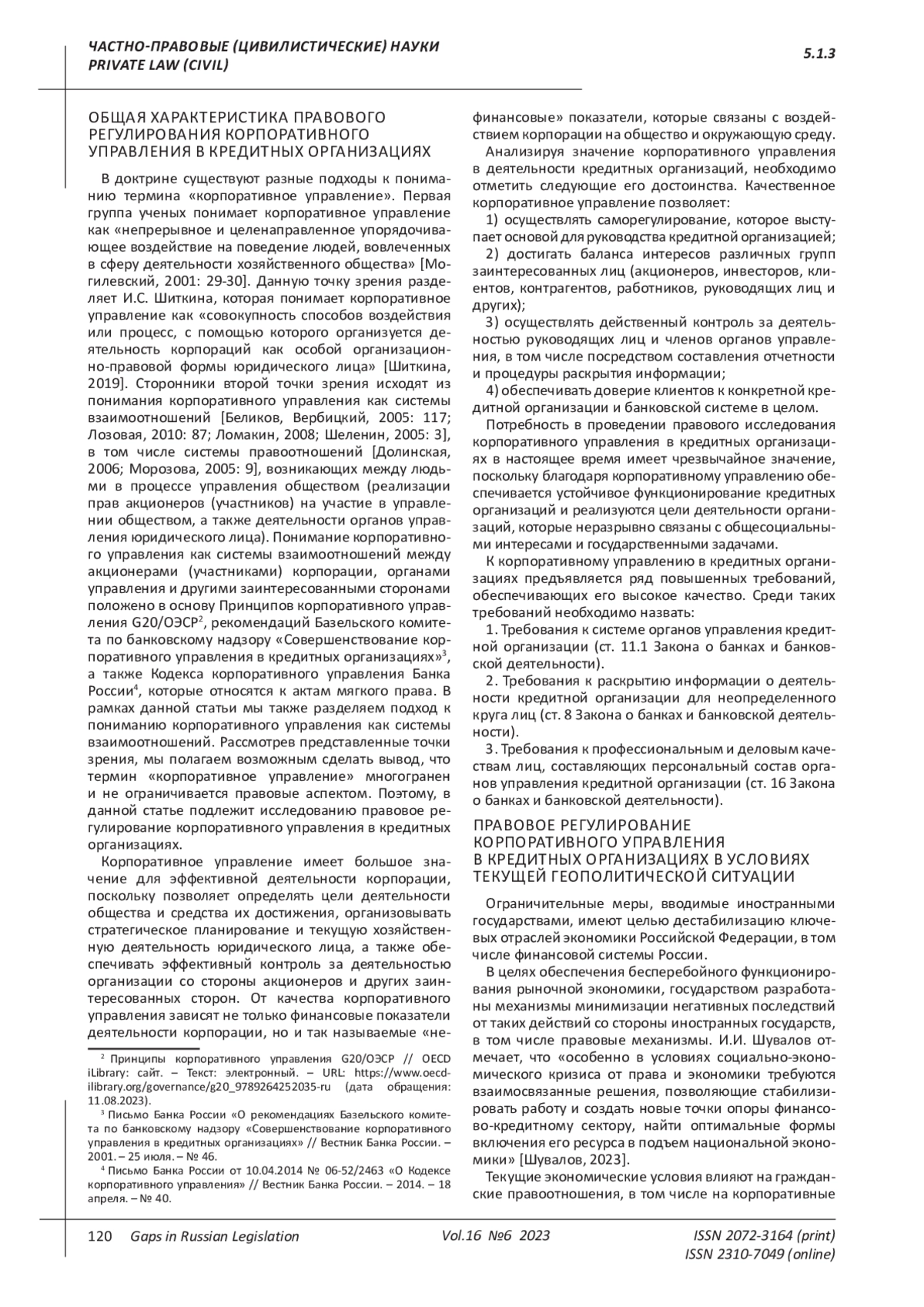 17. 	Шувалов И.И. Правовое обеспечение устойчивости банковской системы в условиях кризиса // Журнал российского права. 2023. № 5. С. 126-139. EDN: MBWZBO