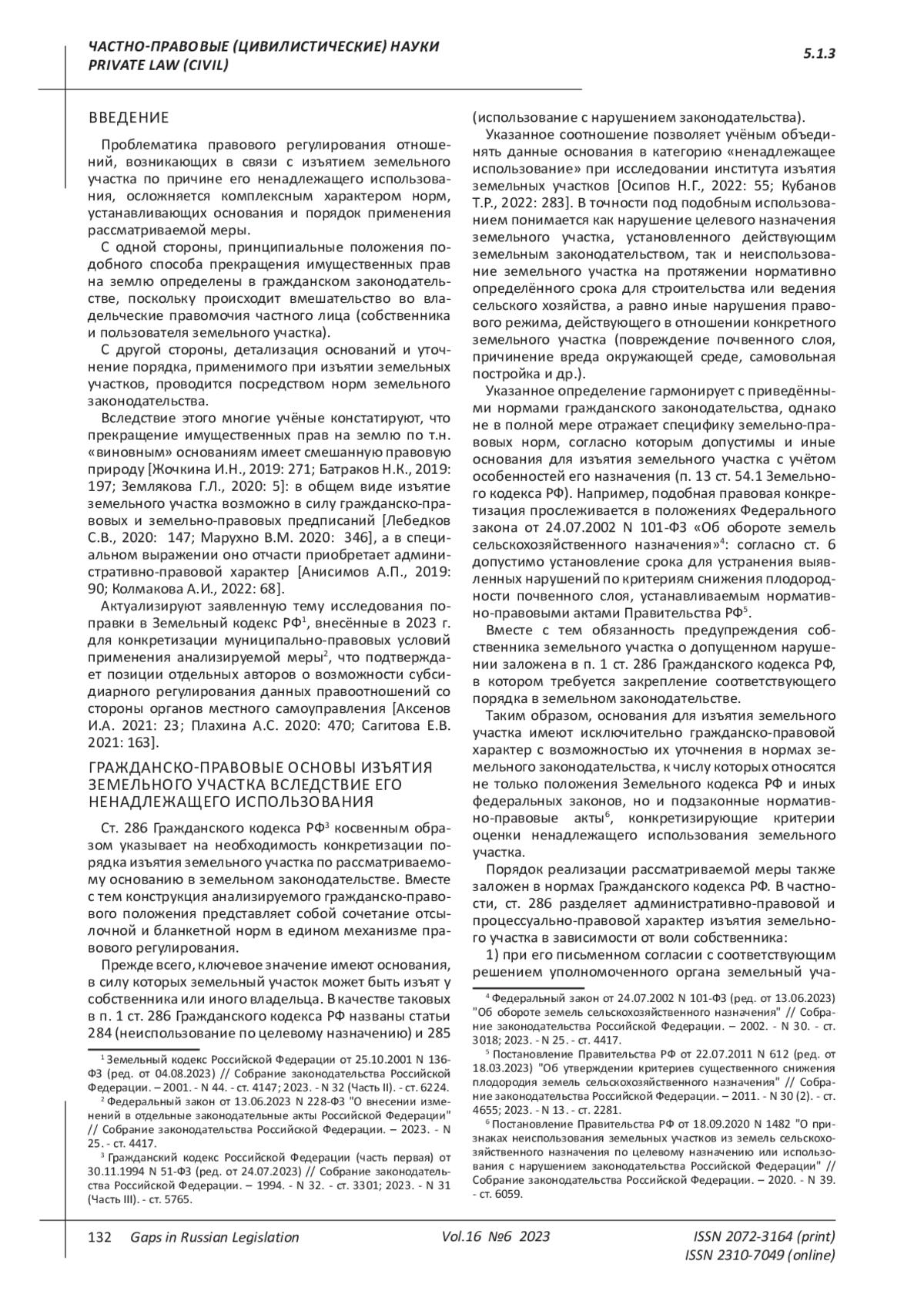 7. 	Кубанов Т.Р., Воленко А.В. Изъятие земельного участка за совершённое правонарушение // Обществознание и социальная психология. 2022. № 7 (37). С. 282-285. EDN: QUCLMC