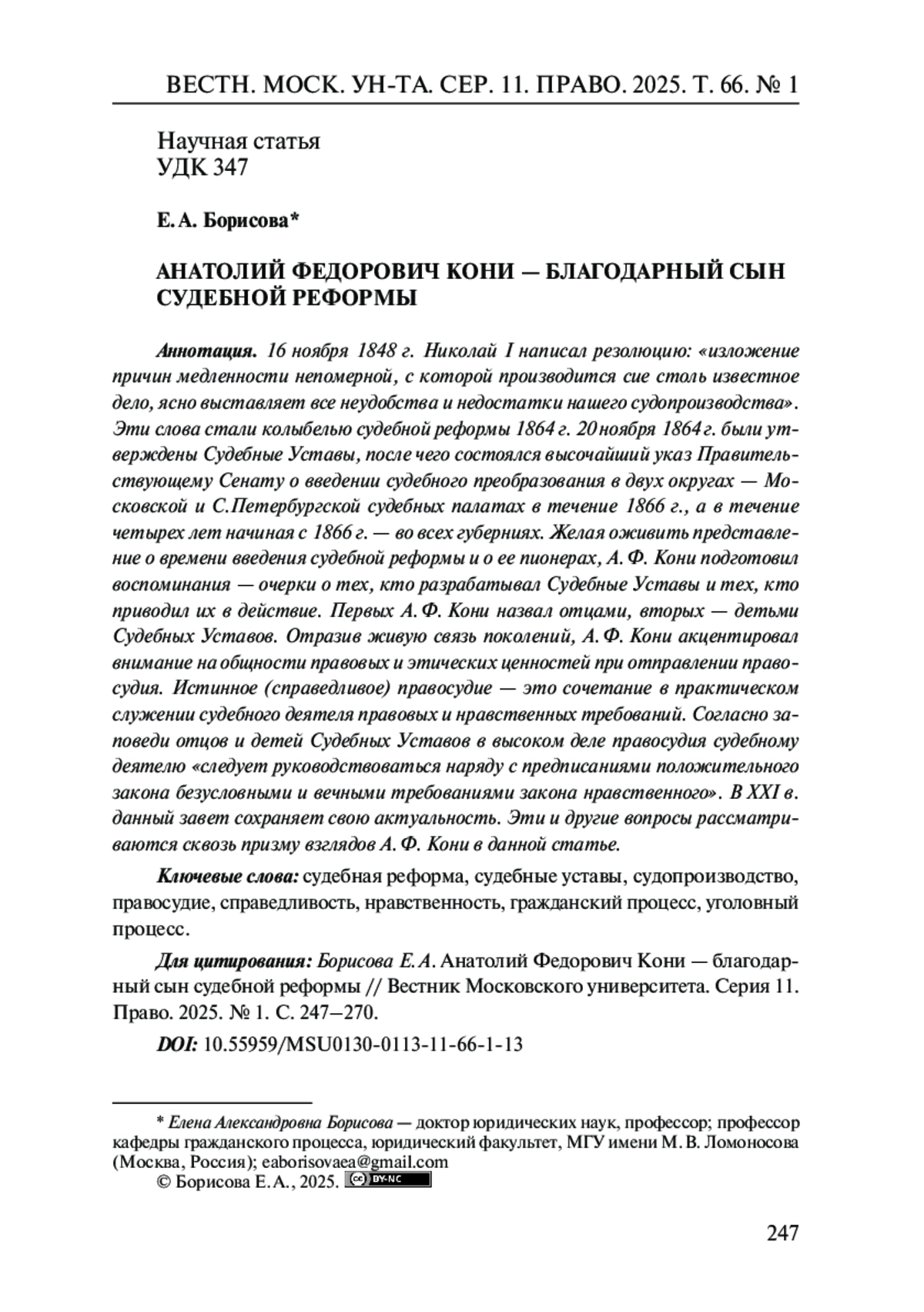 3. 	Борисова Е. А. ГПК РФ: quo vadis? (К 10-летию введения в действие ГПК РФ) // Вестн. Моск. ун-та. Сер. Право. 2013. № 3. С. 23-42.