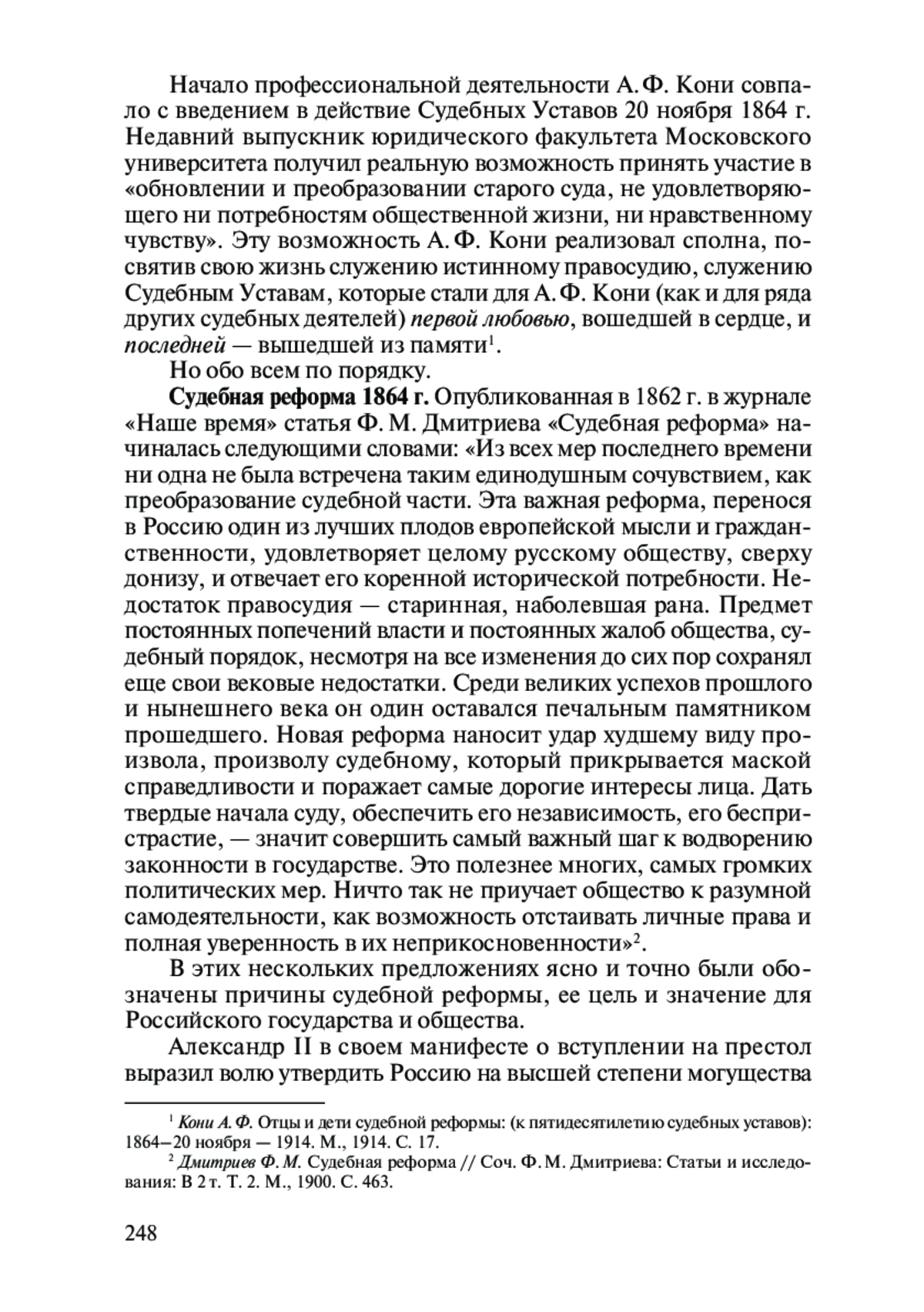 15. 	Кони А. Ф. Отцы и дети судебной реформы: (к пятидесятилетию судебных уставов): 1864-20 ноября - 1914. М., 1914.