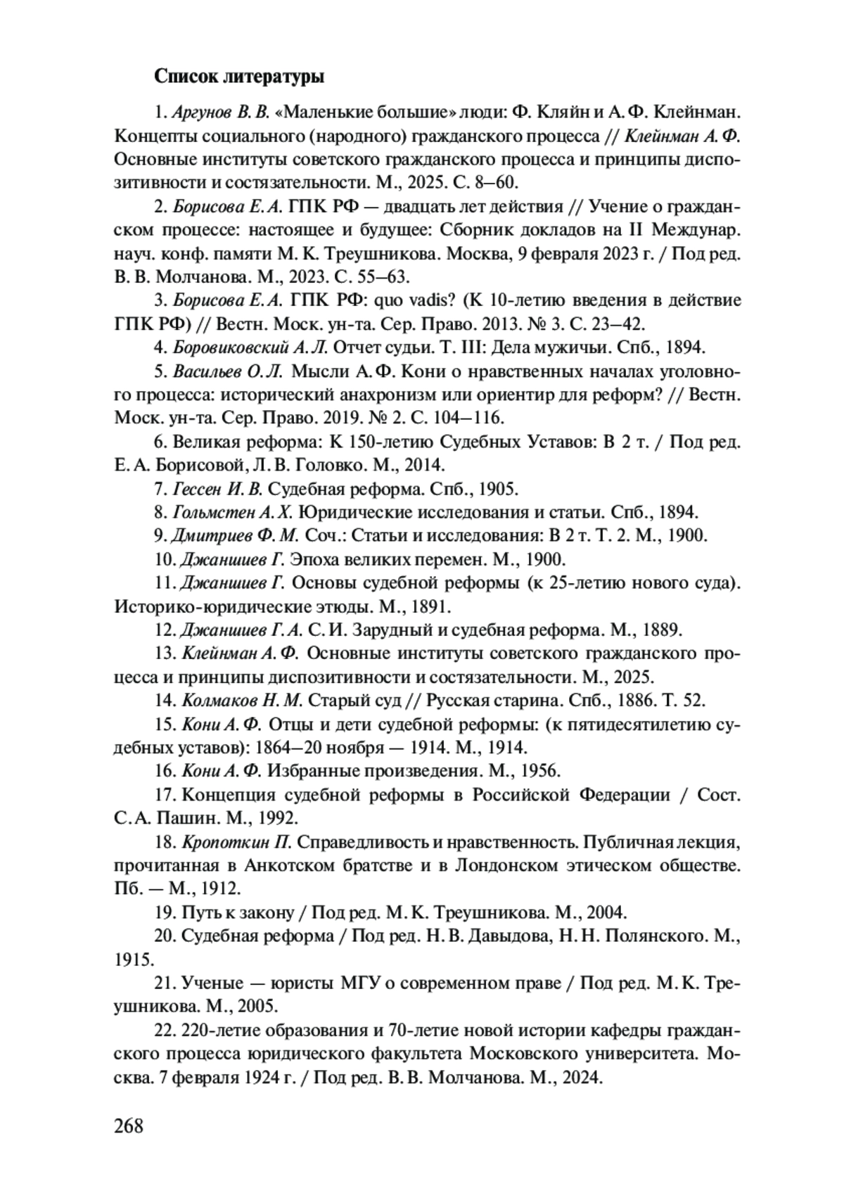 13. 	Клейнман А. Ф. Основные институты советского гражданского процесса и принципы диспозитивности и состязательности. М., 2025.