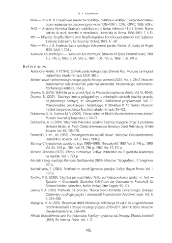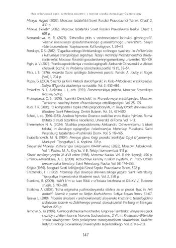 15. 	рысько В. Б. Служба первоучителю Кириллу по Палаузовскому списку // Text - Sprache - Grammatik: Slavisches Schrifttum der Vormoderne: Festschrift für Eckhard Weiher. München; Berlin: Verlag Otto Sagner, 2009. С. 95-123.