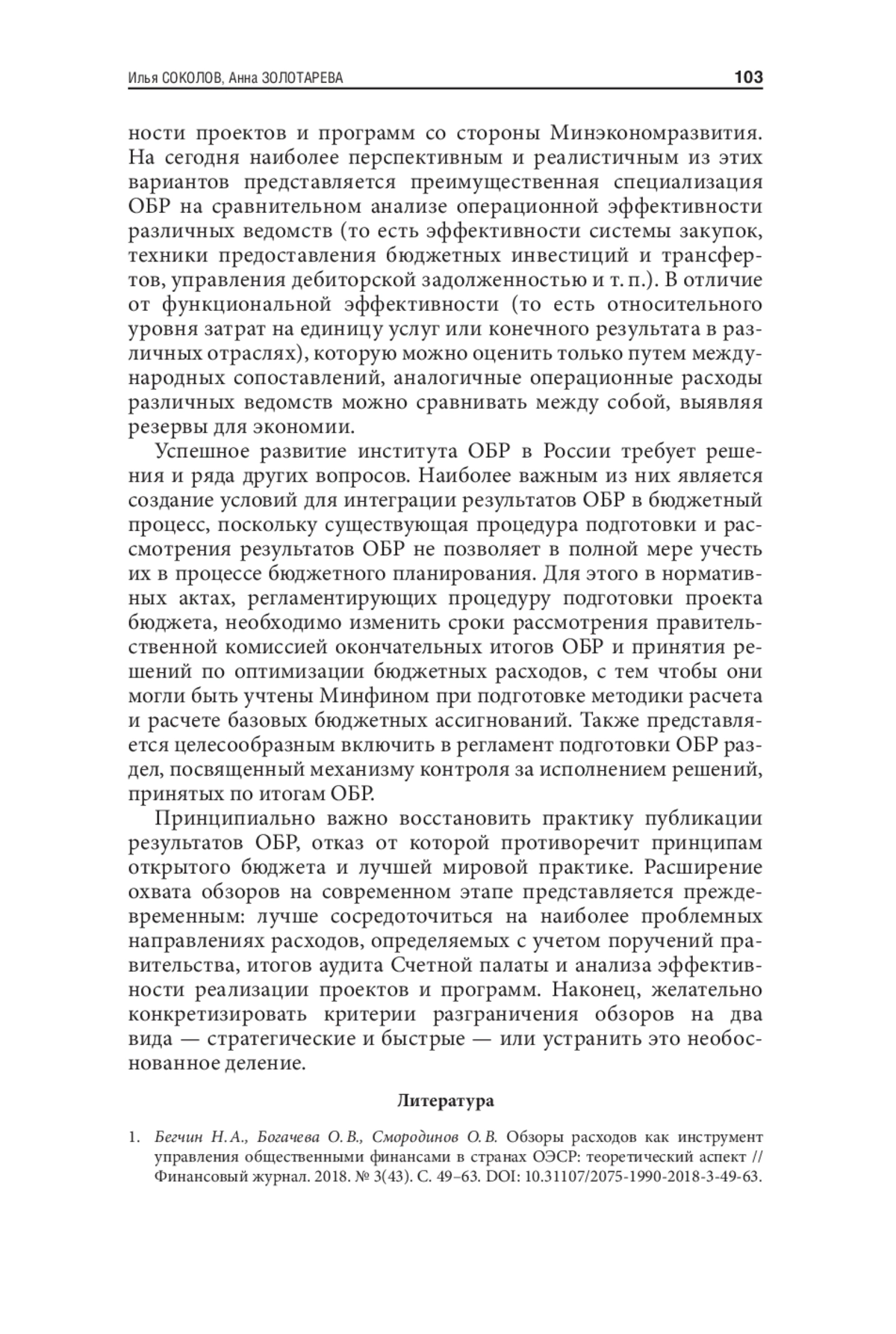 СОКОЛОВ И. А., ЗОЛОТАРЕВА А. Б. МЕСТО ОБЗОРОВ БЮДЖЕТНЫХ РАСХОДОВ СРЕДИ ИНСТРУМЕНТОВ АНАЛИЗА ЭФФЕКТИВНОСТИ // ЭКОНОМИЧЕСКАЯ ПОЛИТИКА. 2025. ТОМ 20, № 2