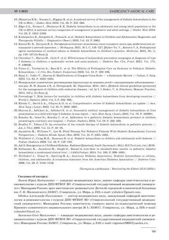 Ключевые фразы: сахарный диабет 1‑го типа, диабетический кетоацидоз, дети и подростки, догос- питальная помощь