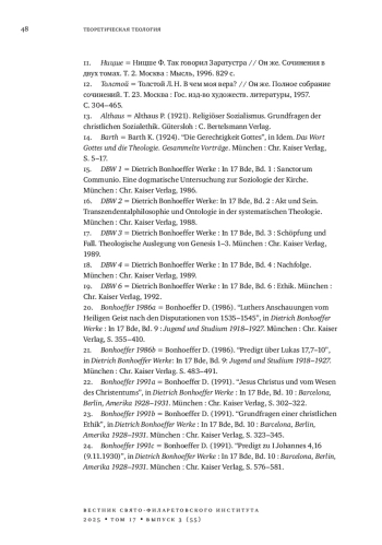 3. 	Бонхёффер Д. Сопротивление и покорность / Изд. Э. Бетге; пер. с нем. А. Б. Григорьева. Москва: Изд-во Сретенской семинарии “Среда”, 2020. 352 с.