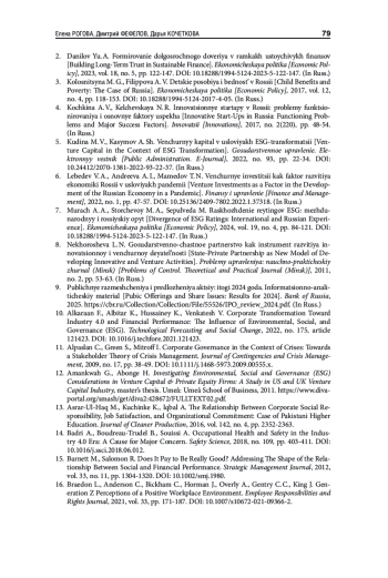 44. Wang J., Ke Y., Shen Y. Venture Capital and ESG Performance: Hindrance or Help? // Economic Computation & Economic Cybernetics Studies & Research. 2023. Vol. 57. No 4. P. 259-274. https://doi.org/10.24818/18423264/57.4.23.16.