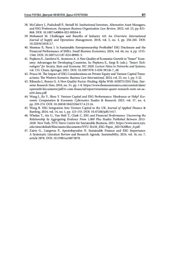 40. Momtaz P., Parra I. Is Sustainable Entrepreneurship Profitable? ESG Disclosure and the Financial Performance of SMEs // Small Business Economics. 2025. Vol. 64. No 4. P. 1535-1564. https://doi.org/10.1007/s11187-024-00981-5.
