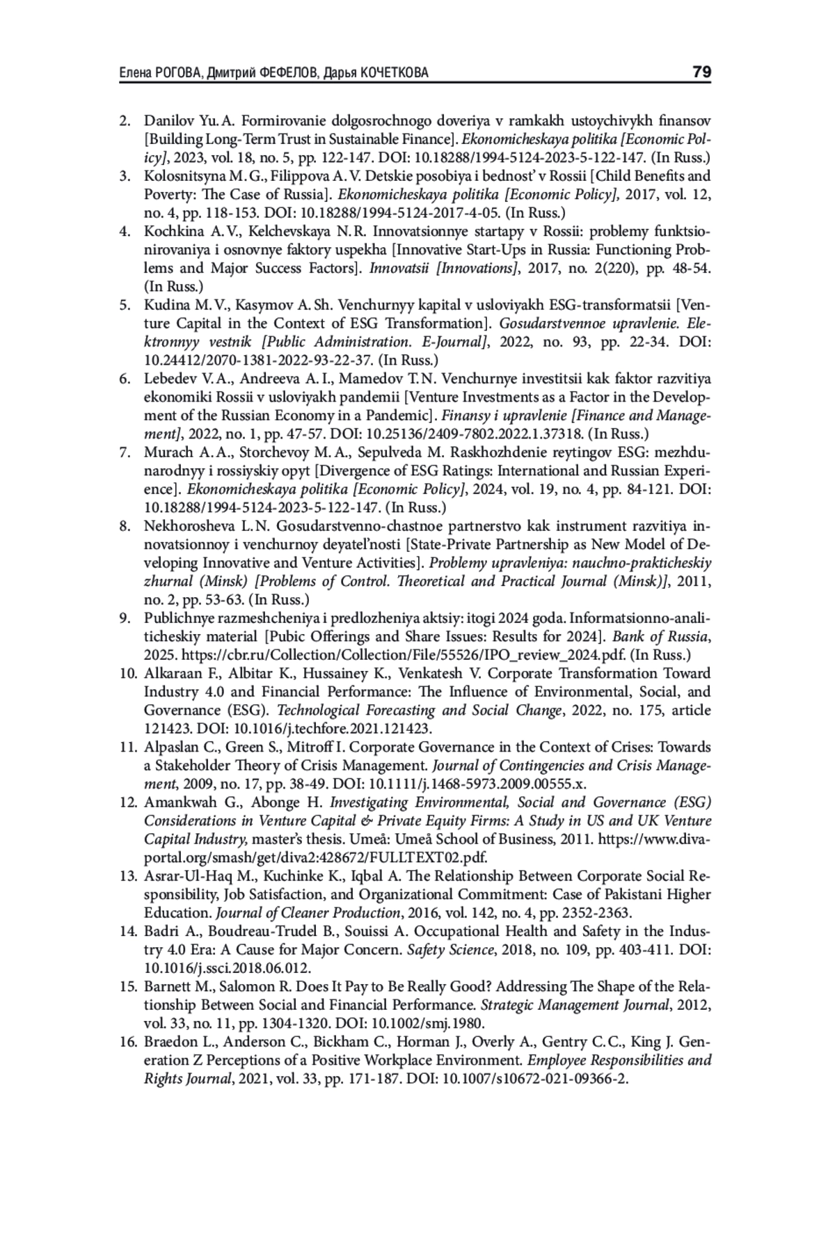 5. Кудина М. В., Касымов А. Ш. Венчурный капитал в условиях ESG-трансформации // Государственное управление. Электронный вестник. 2022. № 93. С. 22-34. https://doi.org/10.24412/2070-1381-2022-93-22-37.