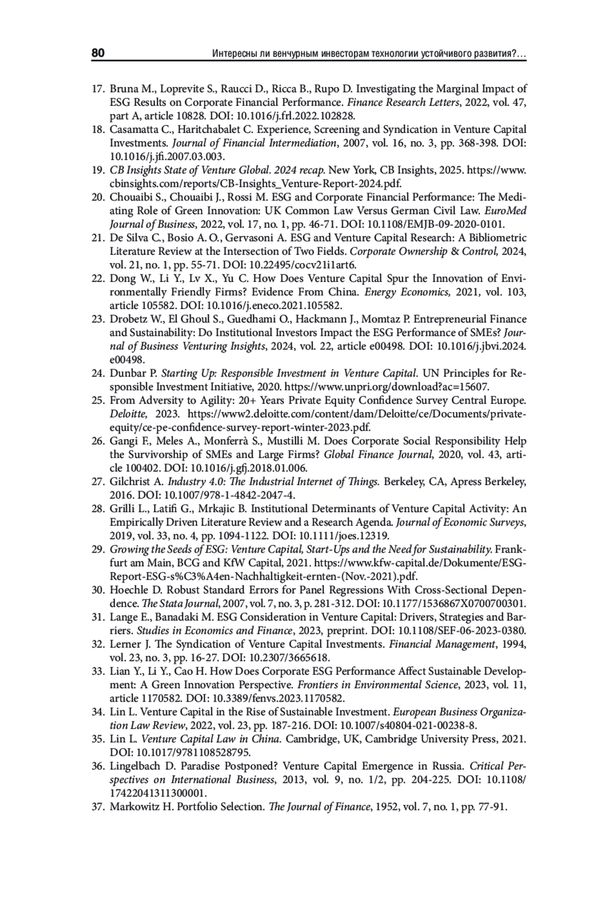 45. Wang R. ESG Integration Into Venture Capital in the UK // Journal of Applied Finance & Banking. 2024. Vol. 14. No 1. P. 123-153. https://doi.org/10.47260/jafb/1417.