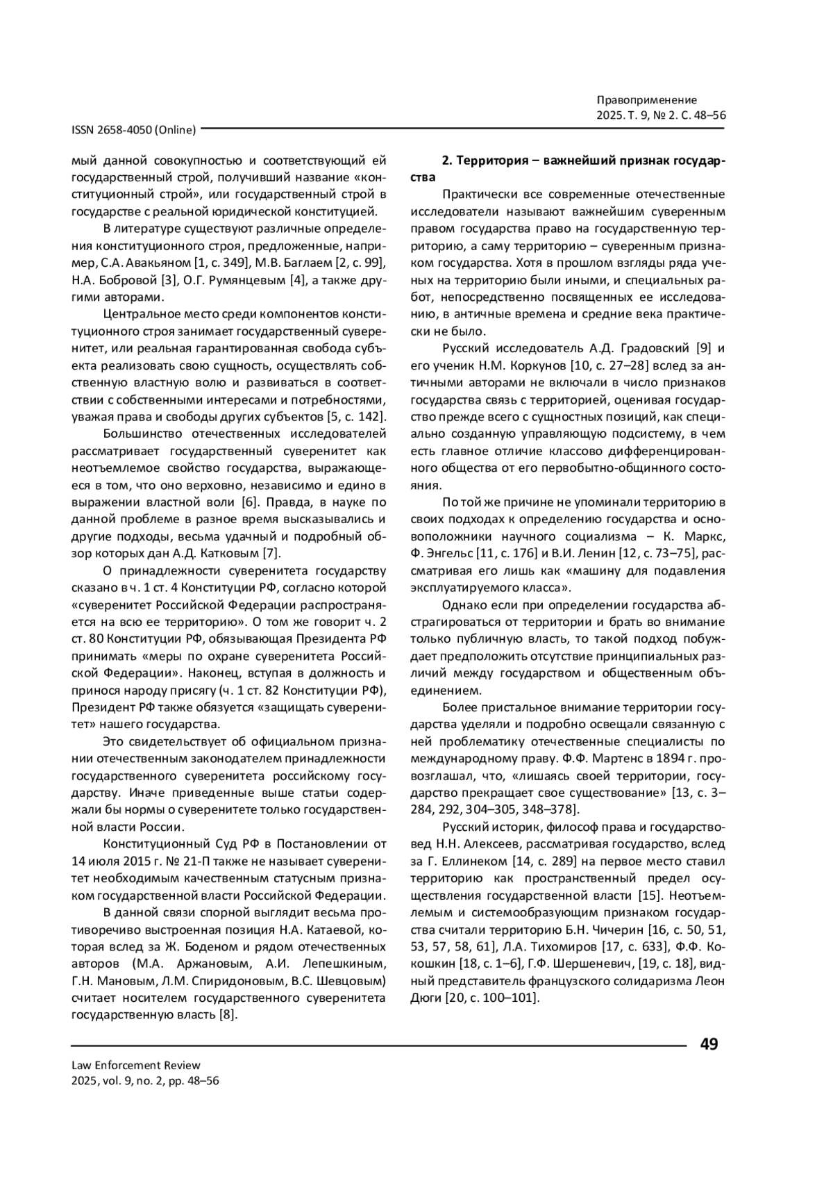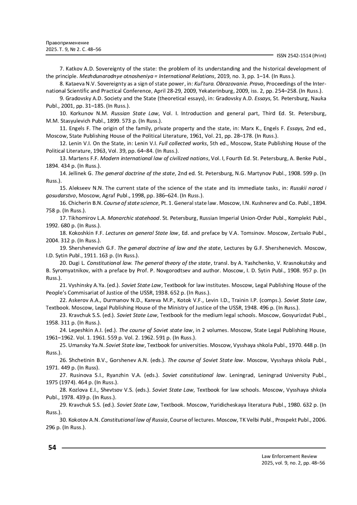 7. 	Катков А. Д. Суверенитет государства: проблема его понимания и принципов исторического развития / А. Д. Катков // Международные отношения. - 2019. - № 3. - С. 1-14.