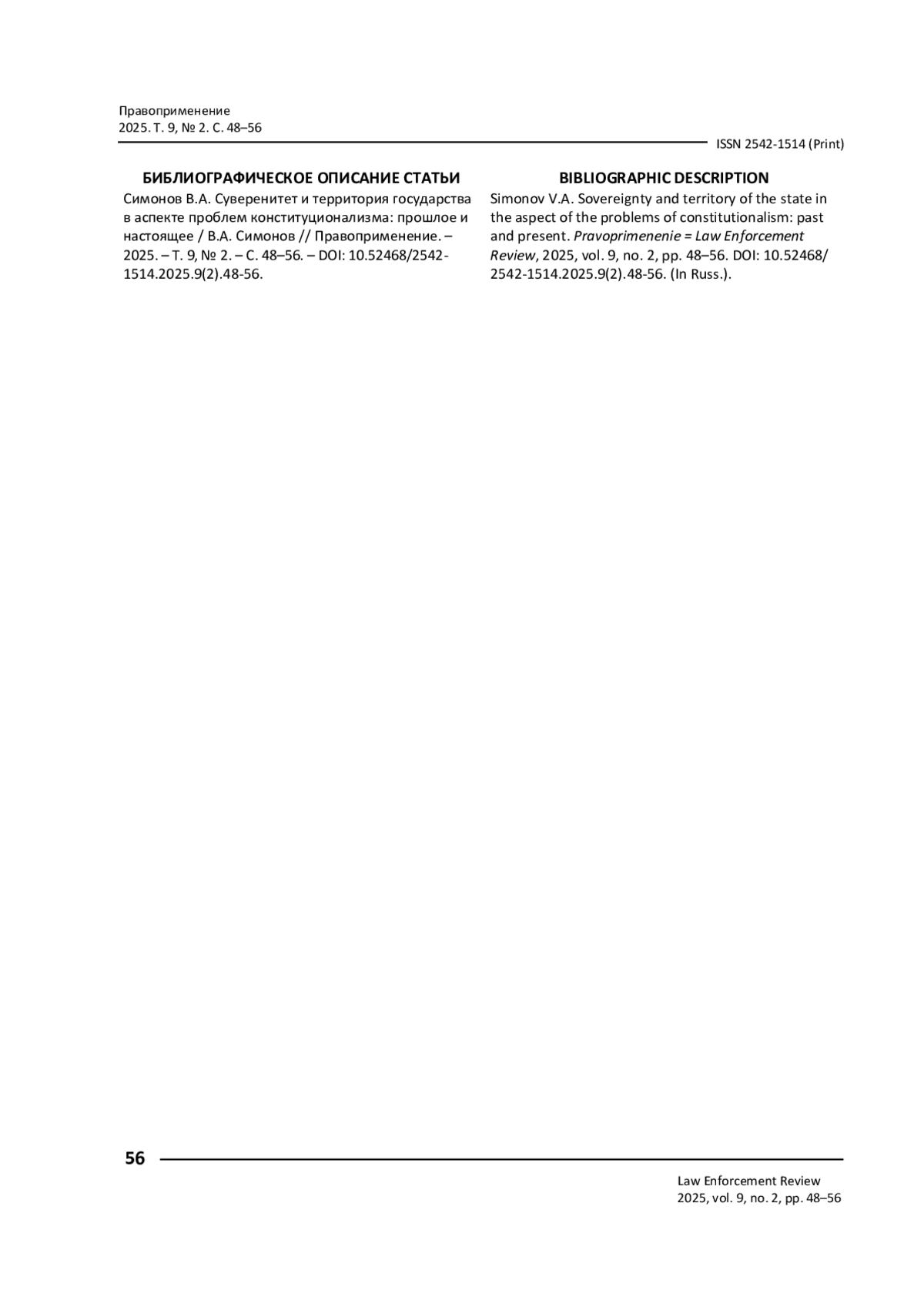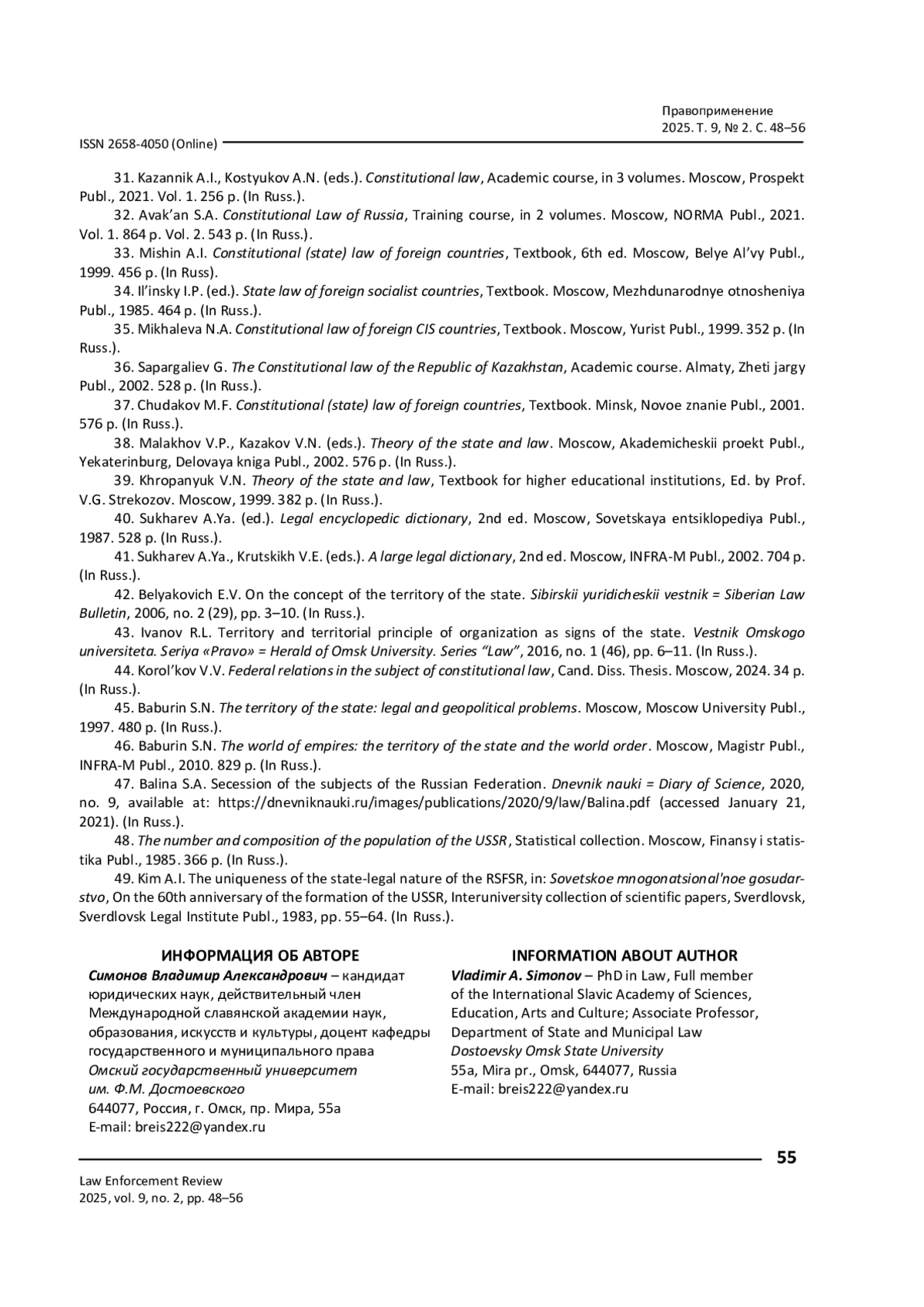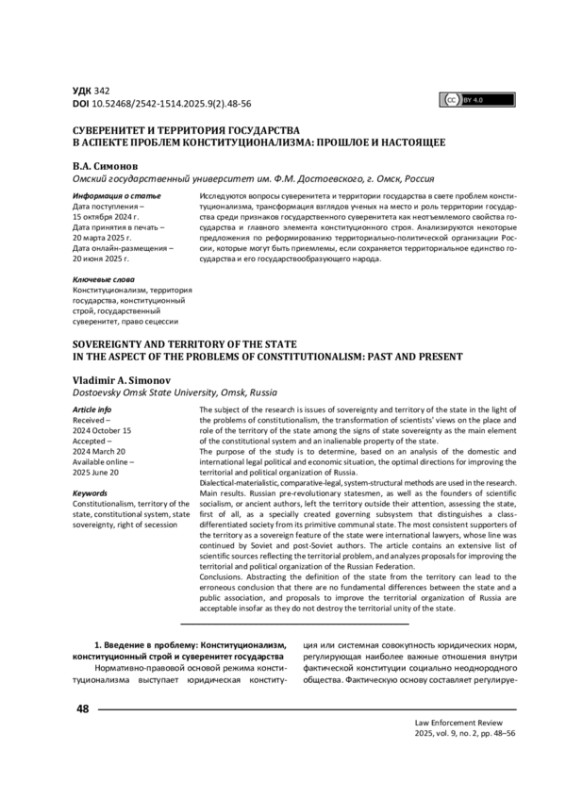 6. 	Симонов В. А. Суверенитет: проблемы субъектов / В. А. Симонов // Вестник Омского университета. Серия “Право”. - 2016. - № 1 (46). - С. 54-68. EDN: VNTQWD