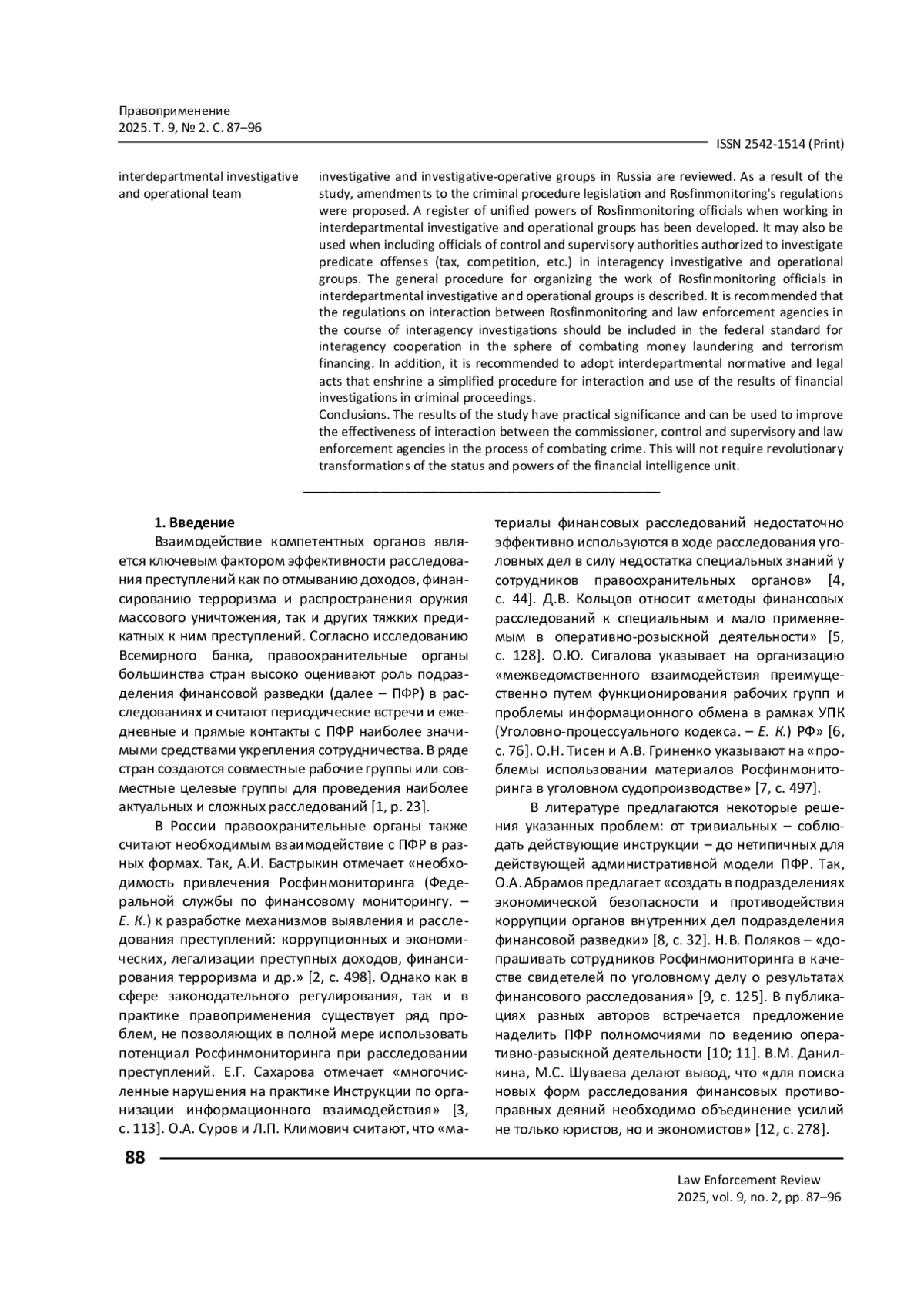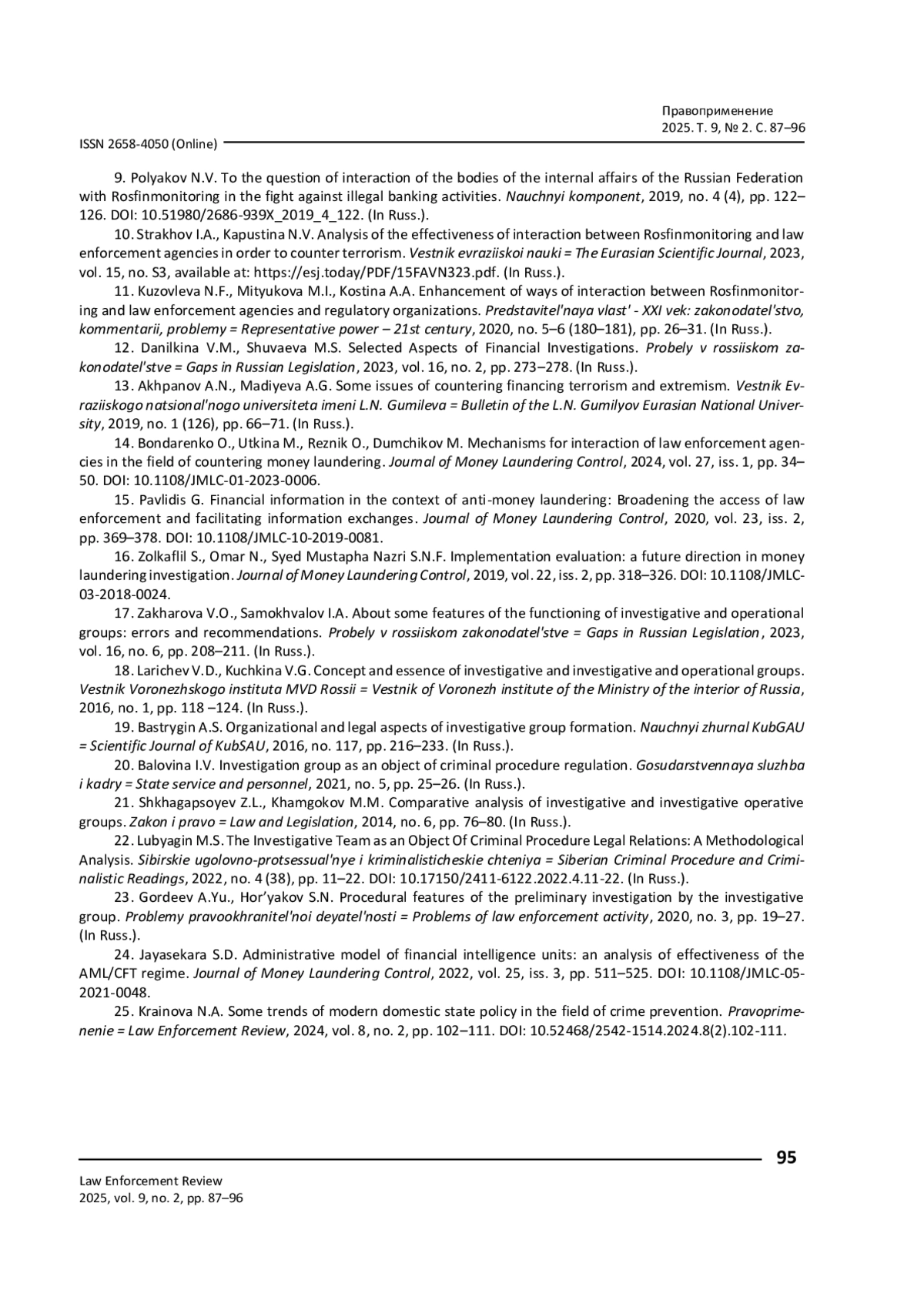 10. 	Страхов И. А. Анализ эффективности взаимодействия Росфинмониторинга и правоохранительных органов в целях противодействия терроризму / И. А. Страхов, Н. В. Капустина // Вестник евразийской науки. - 2023. - Т. 15, № S3. - URL: https://esj.today/PDF/15FAVN323.pdf. EDN: LRCXLO