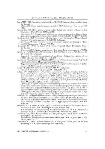 15. 	Obrazhiev, K.V. & Pikurov, N.I. (eds.). (2023) Commentary on the Criminal Code of the Russian Federation: in 3 vols. Vol. 1. General part. Moscow, Prospekt Publ.