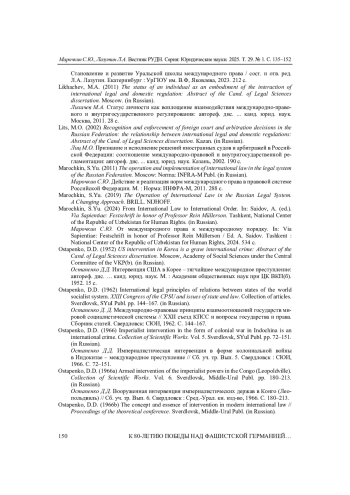 15. 	Становление и развитие Уральской школы международного права / сост. и отв. ред. Л.А. Лазутин. Екатеринбург: УрГЮУ им. В.Ф, Яковлева, 2023. 212 c.