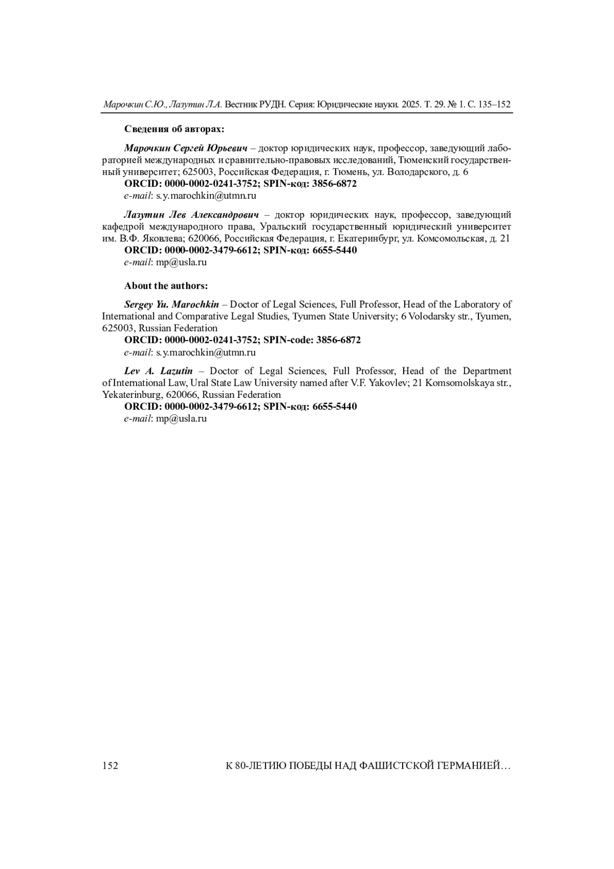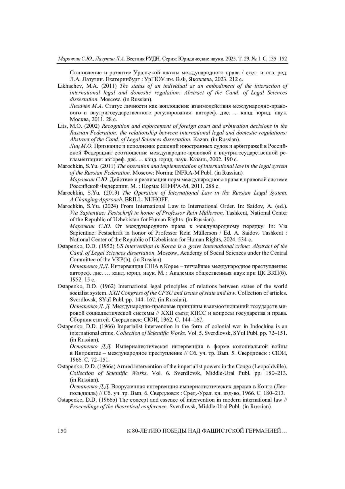 20. 	Марочкин С.Ю. От международного права к международному порядку. In: Via Sapientiae: Festschrift in honor of Professor Rein Müllerson / Ed. A. Saidov. Tashkent: National Center of the Republic of Uzbekistan for Human Rights, 2024. 534 c.