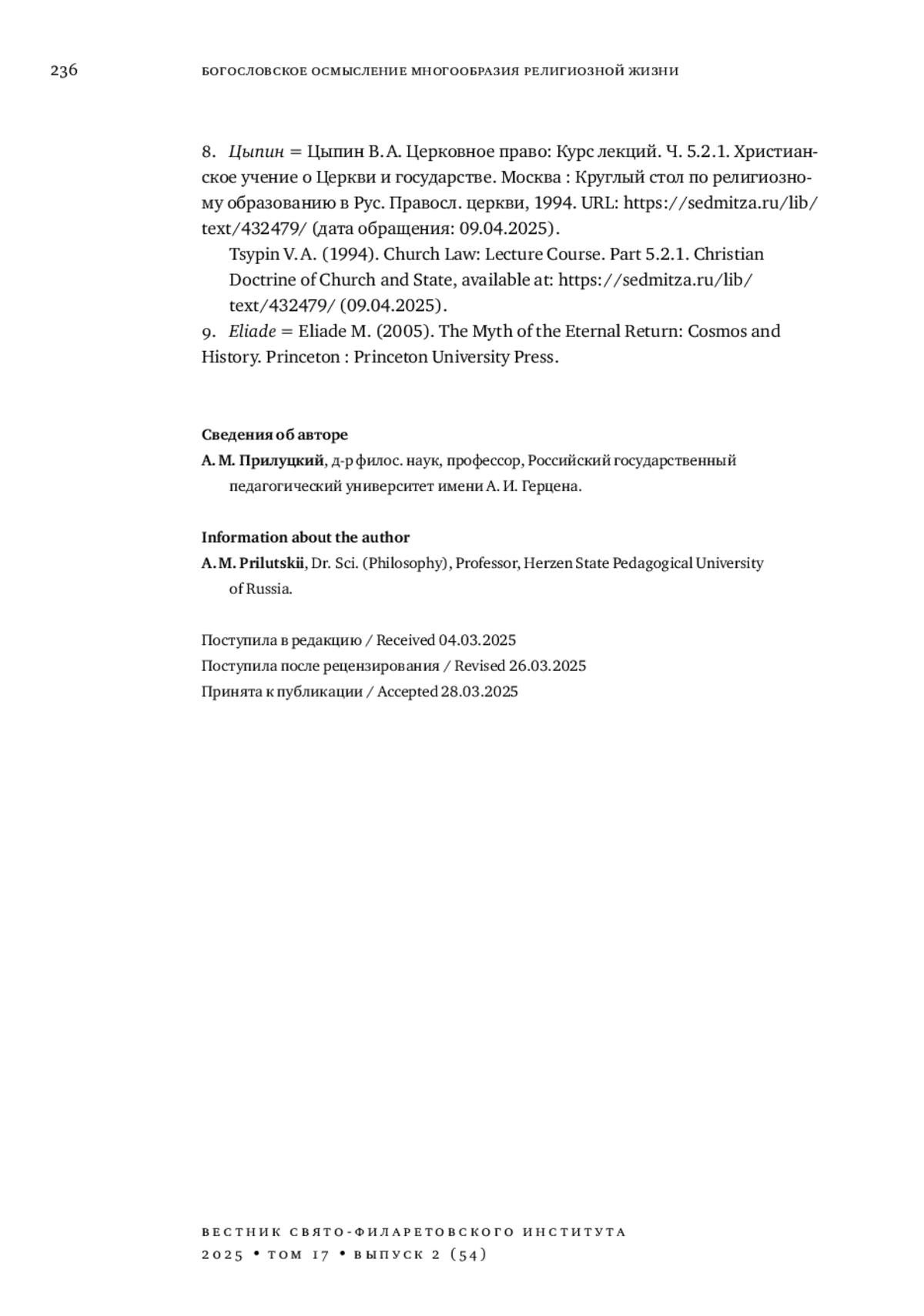 8. 	Цыпин В. А. Церковное право: Курс лекций. Ч. 5.2.1. Христианское учение о Церкви и государстве. Москва: Круглый стол по религиозному образованию в Рус. Правосл. церкви, 1994. URL: https://sedmitza.ru/lib/text/432479/ (дата обращения: 09.04.2025).