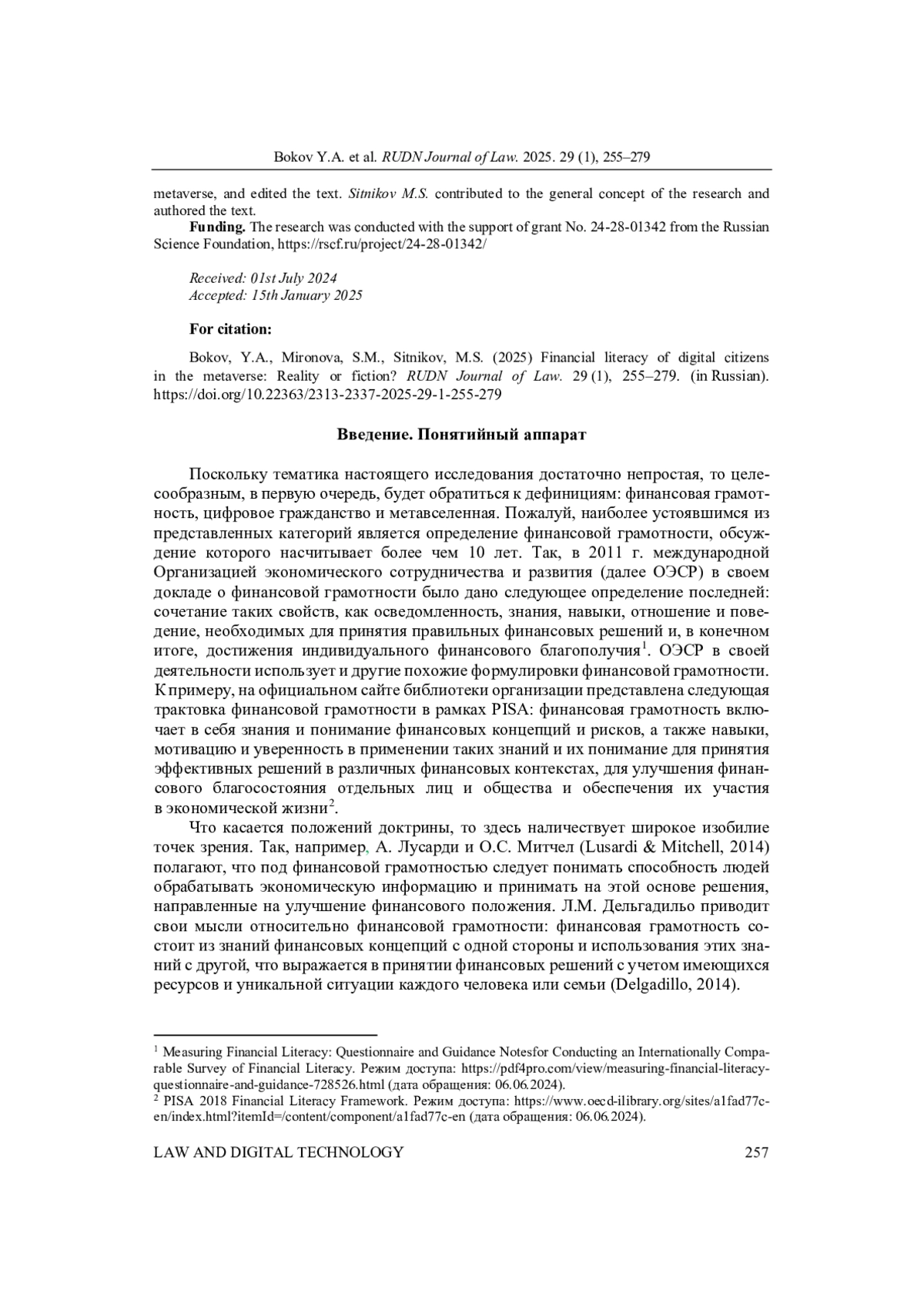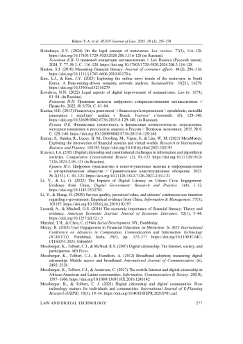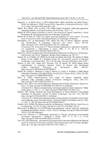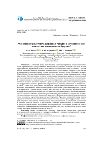 БОКОВ Ю. А., МИРОНОВА С. М., СИТНИКОВ М. С. ФИНАНСОВАЯ ГРАМОТНОСТЬ ЦИФРОВЫХ ГРАЖДАН В МЕТАВСЕЛЕННЫХ: ФАНТАСТИКА ИЛИ НЕДАЛЕКОЕ БУДУЩЕЕ? // ВЕСТНИК РОССИЙСКОГО УНИВЕРСИТЕТА ДРУЖБЫ НАРОДОВ. СЕРИЯ: ЮРИДИЧЕСКИЕ НАУКИ. 2025. Т. 29 № 1