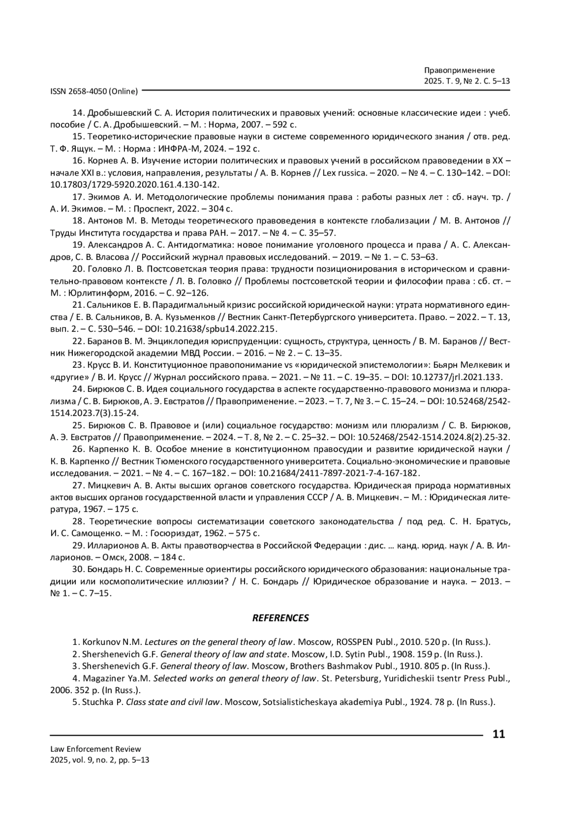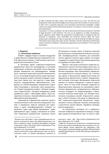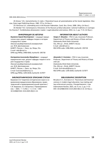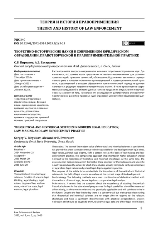 БИРЮКОВ С. В., ЕВСТРАТОВ А. Э. ТЕОРЕТИКО-ИСТОРИЧЕСКИЕ НАУКИ В СОВРЕМЕННОМ ЮРИДИЧЕСКОМ ОБРАЗОВАНИИ, ПРАВОТВОРЧЕСКОЙ И ПРАВОПРИМЕНИТЕЛЬНОЙ ПРАКТИКЕ // ПРАВОПРИМЕНЕНИЕ. 2025. ТОМ 9, № 2
