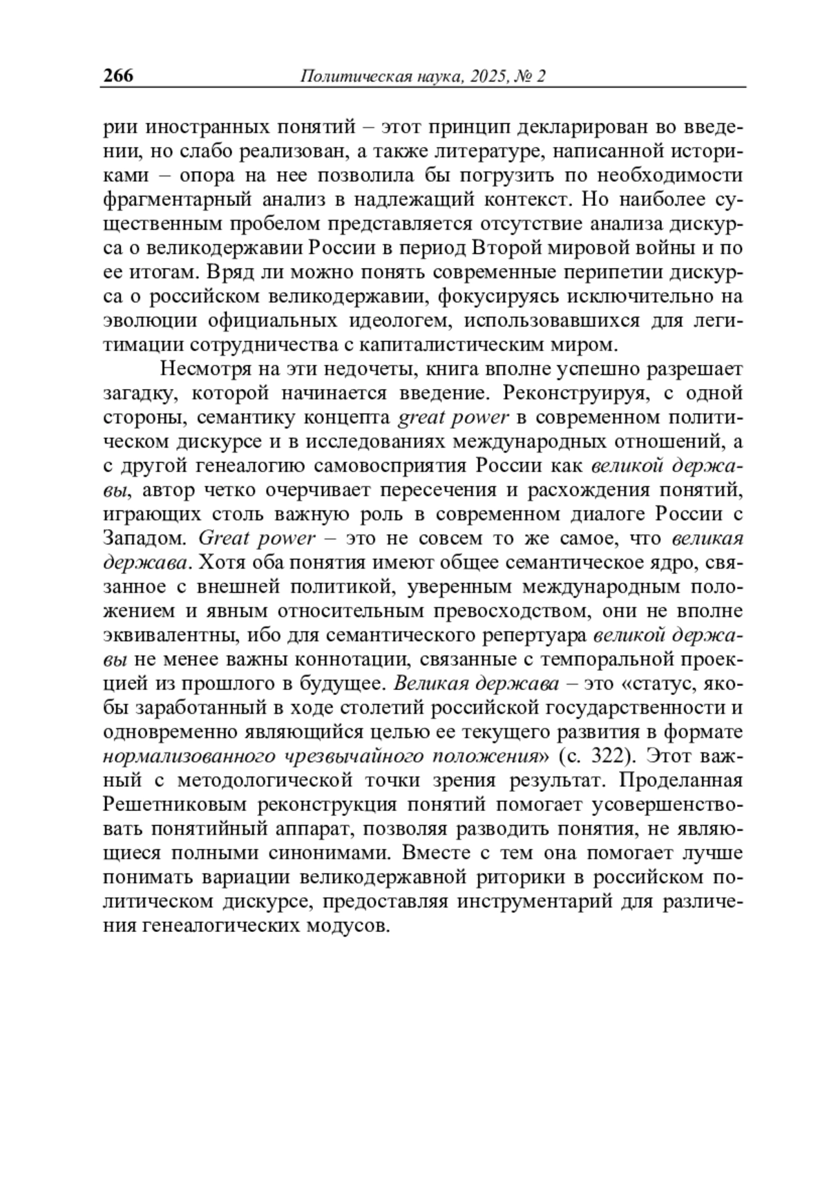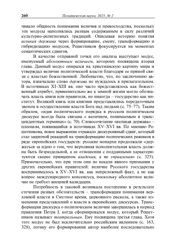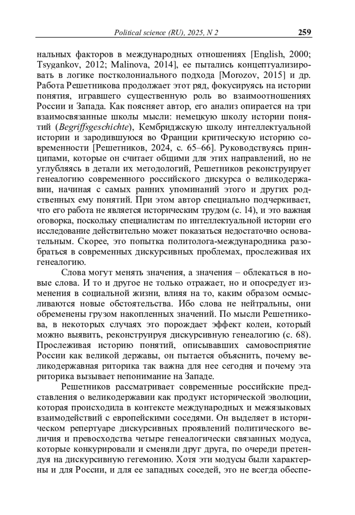 Рец. на кн.: Решетников А. Погоня за величием: тысячелетний диалог России с Западом / А. Решетников; пер. с англ. Ю. Игнатьевой. – М.: Новое литературное обозрение, 2024. – 384 с.