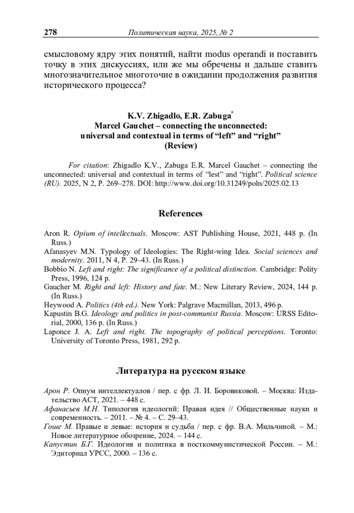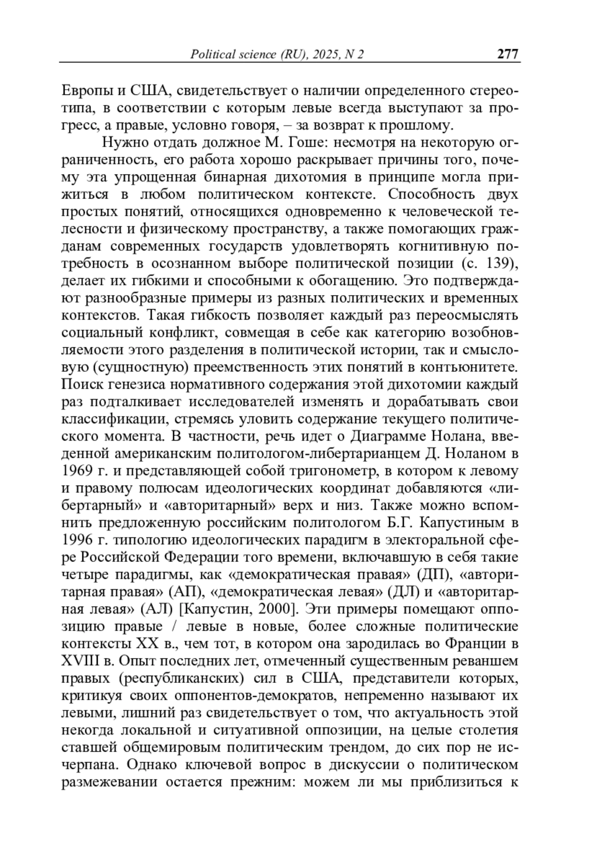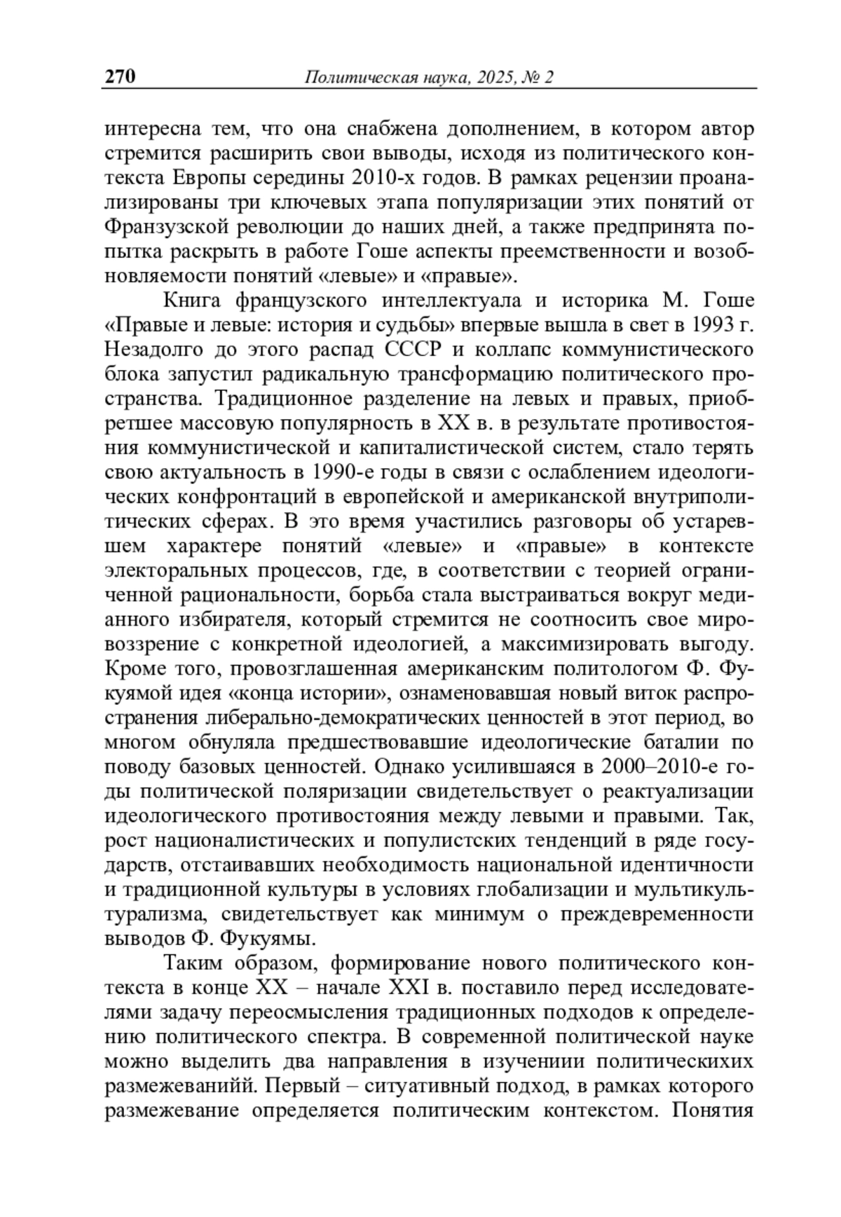 Рец. на кн.: Гоше М. Правые и левые: история и судьба / М. Гоше; пер. с фр. В. А. Мильчиной. – М.: Новое литературное обозрение, 2024. – 144 с. (Серия «Интеллектуальная история»)