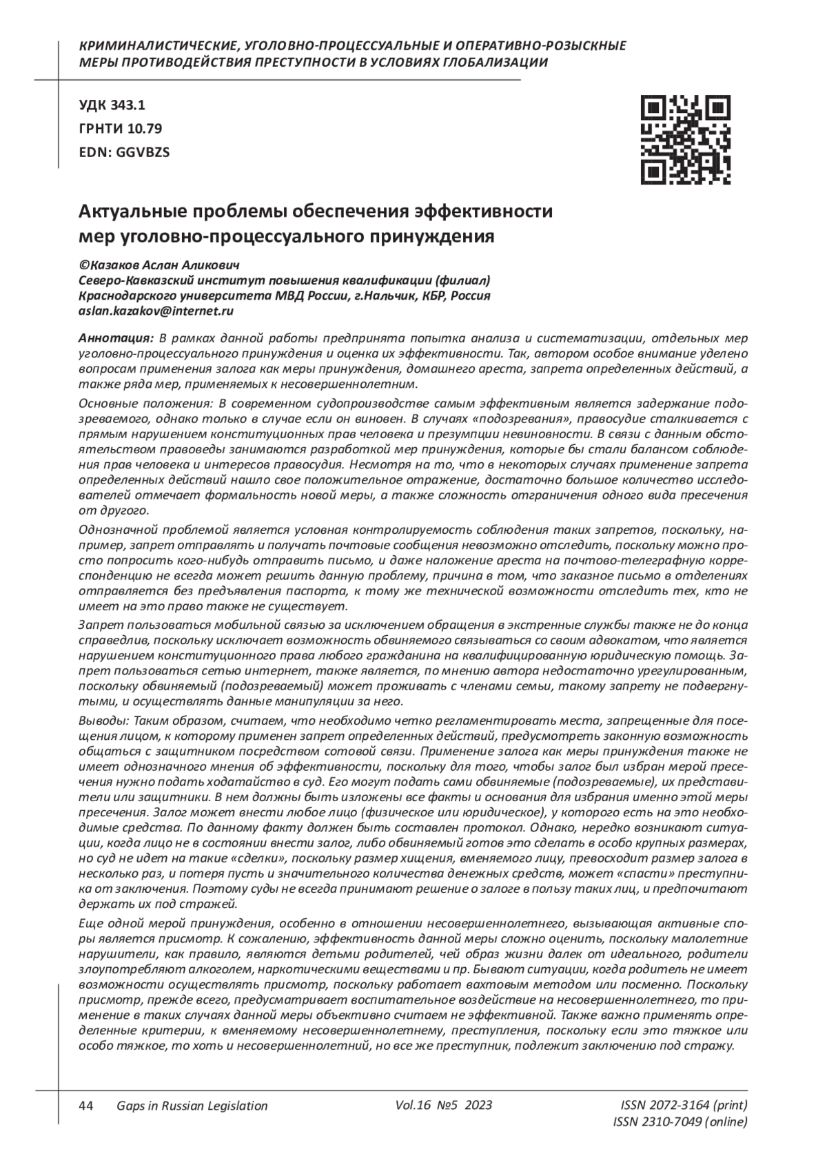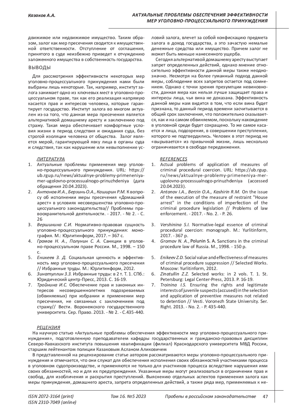 1. Актуальные проблемы применения мер уголовно-процессуального принуждения. URL: https://ub.rgup.ru/news/aktualnye-problemy-primeneniya-mer-ugolovno-processualnogo-prinuzhdeniya (дата обращения 20.04.2023).