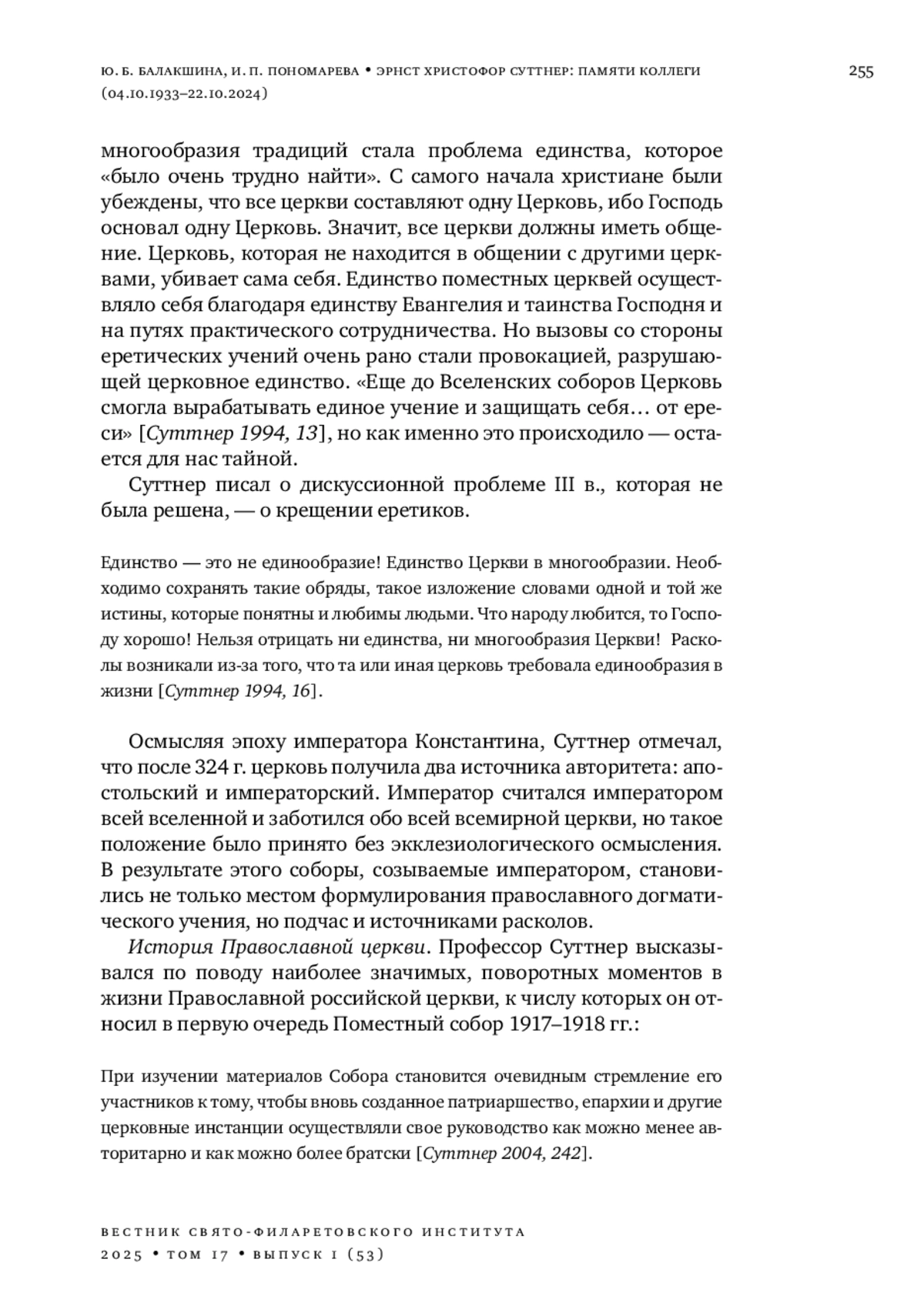 6. Суттнер Э. Х. Некоторые размышления о Поместном соборе Русской Православной церкви 1917-1918 гг. и о II Ватиканском соборе Католической церкви // Память и беспамятство в церкви и обществе: итоги ХХ века: Материалы международной научно-богословской конференции (Москва, 18-20 сентября 2000 г.): Сборник. Москва: Свято-Филаретовский православно-христианский институт, 2004. С. 235-243.