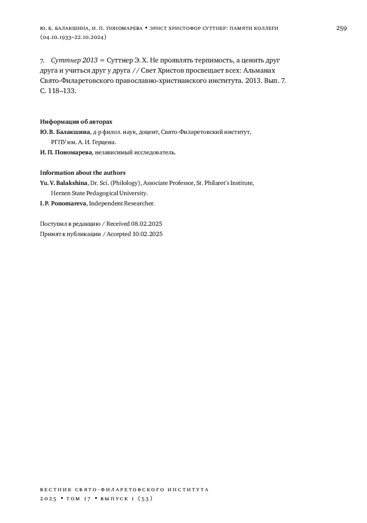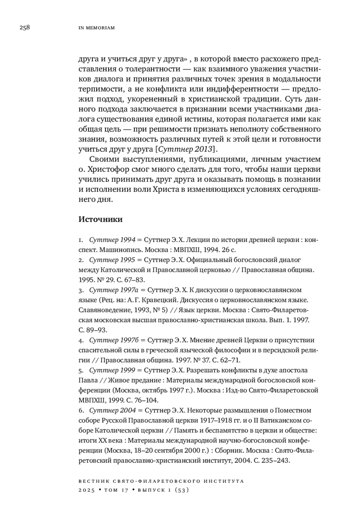 7. Суттнер Э. Х. Не проявлять терпимость, а ценить друг друга и учиться друг у друга // Свет Христов просвещает всех: Альманах Свято-Филаретовского православно-христианского института. 2013. Вып. 7. С. 118-133.