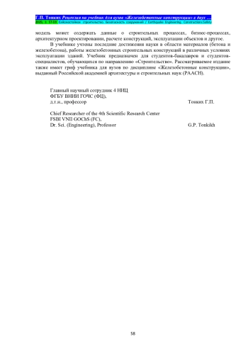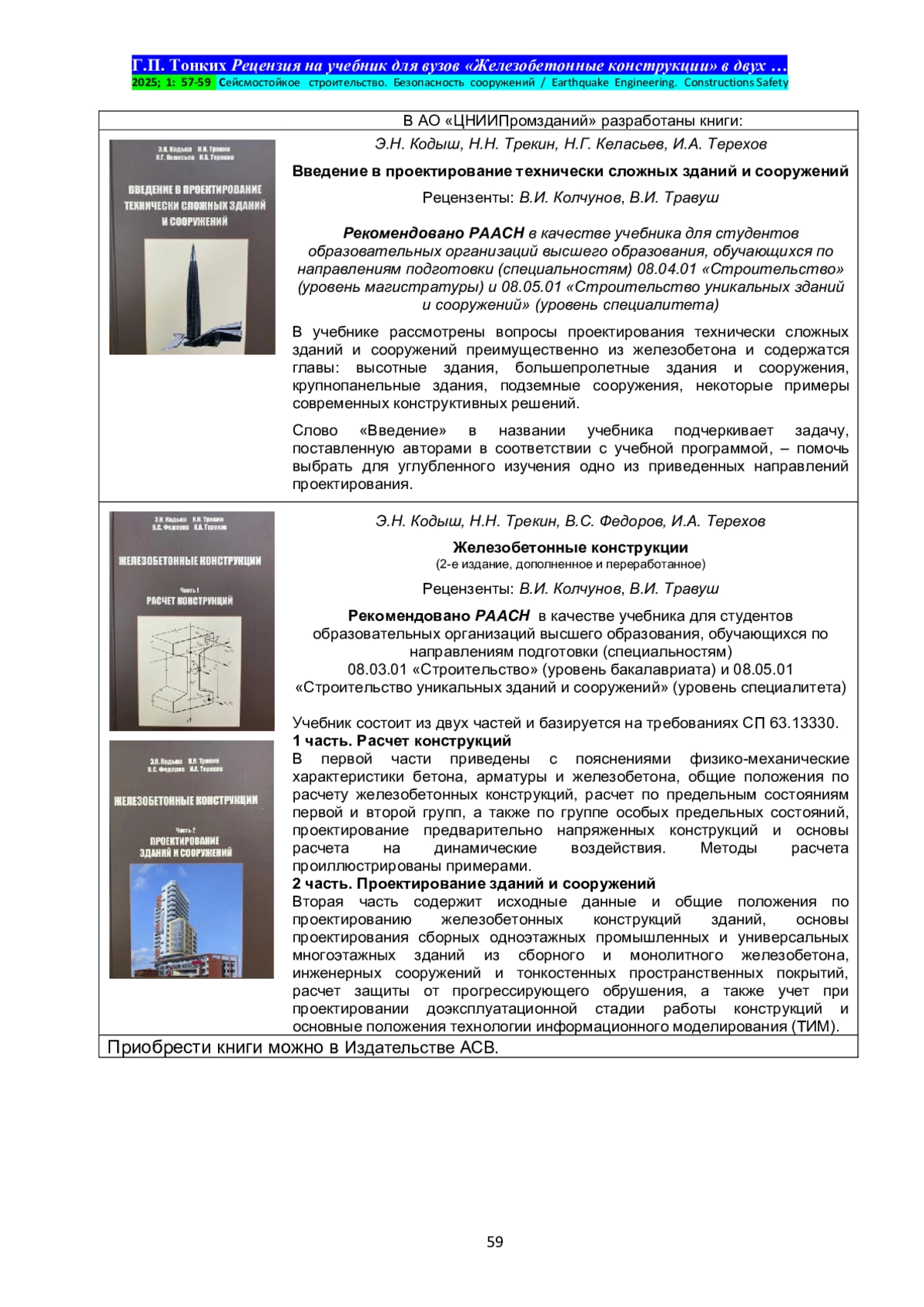 ТОНКИХ Г. П. УЧЕБНИК ДЛЯ ВУЗОВ «ЖЕЛЕЗОБЕТОННЫЕ КОНСТРУКЦИИ» В ДВУХ ЧАСТЯХ // СЕЙСМОСТОЙКОЕ СТРОИТЕЛЬСТВО. БЕЗОПАСНОСТЬ СООРУЖЕНИЙ. 2025. № 1