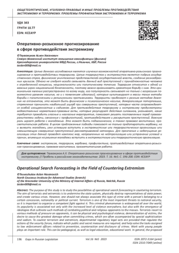 Shuvalov A.P., Tishkin D.N. Operational search forecasting in the field of countering religious extremism: topical issues of complex interaction with civil society institutions // Jurist-Pravoved. 2020. No. 1 (92). pp. 135-140. EDN: WNRPRJ