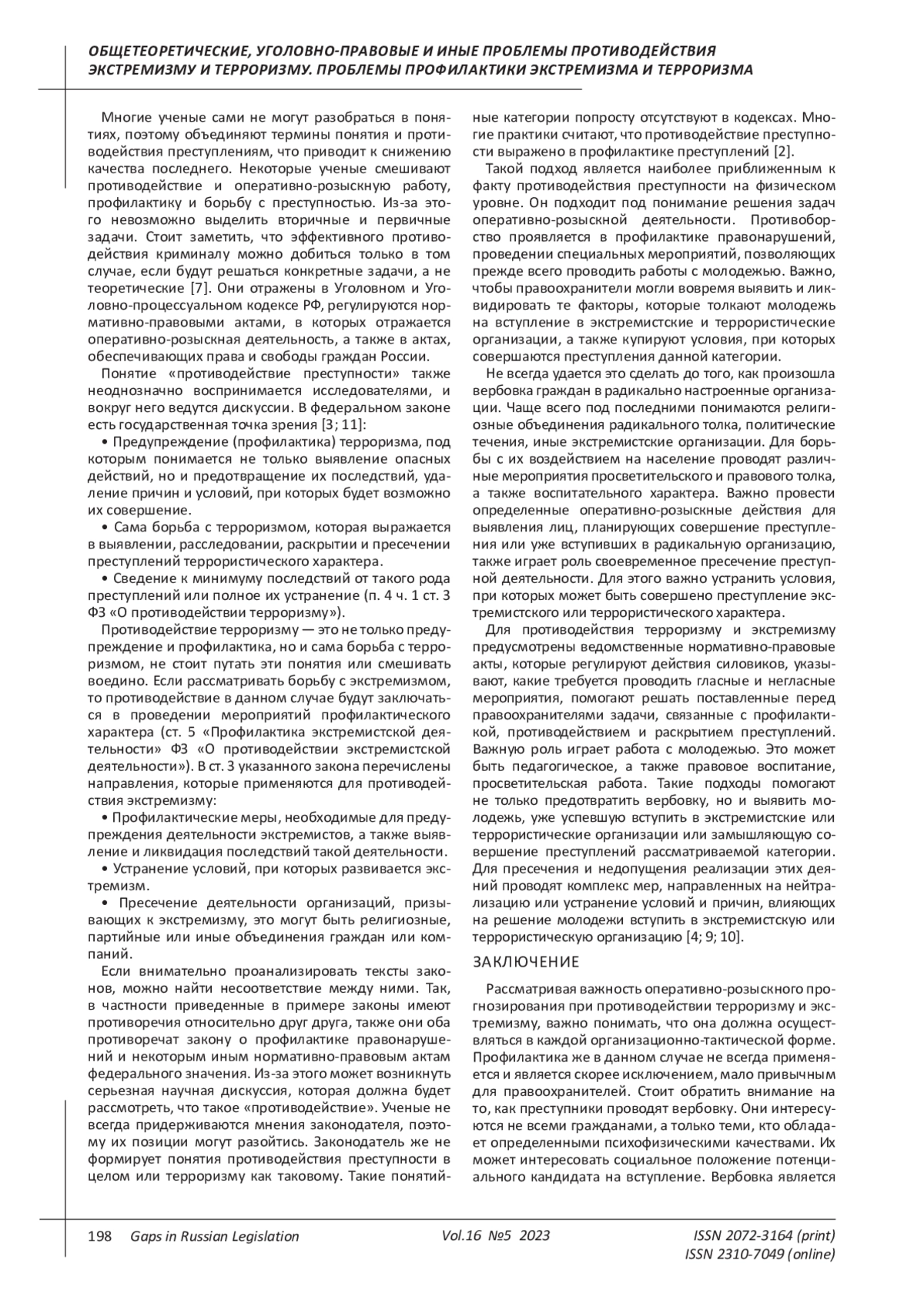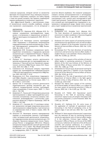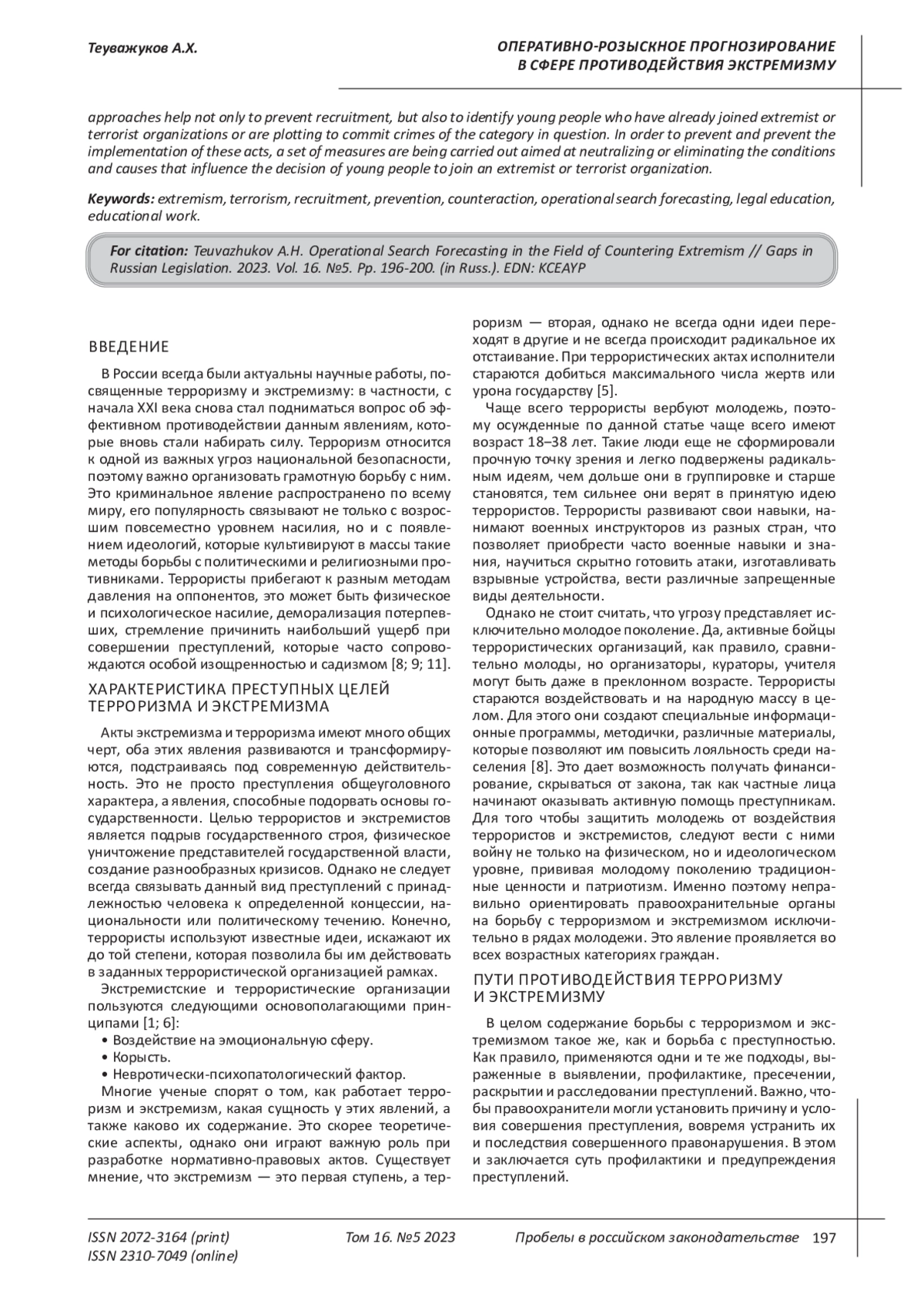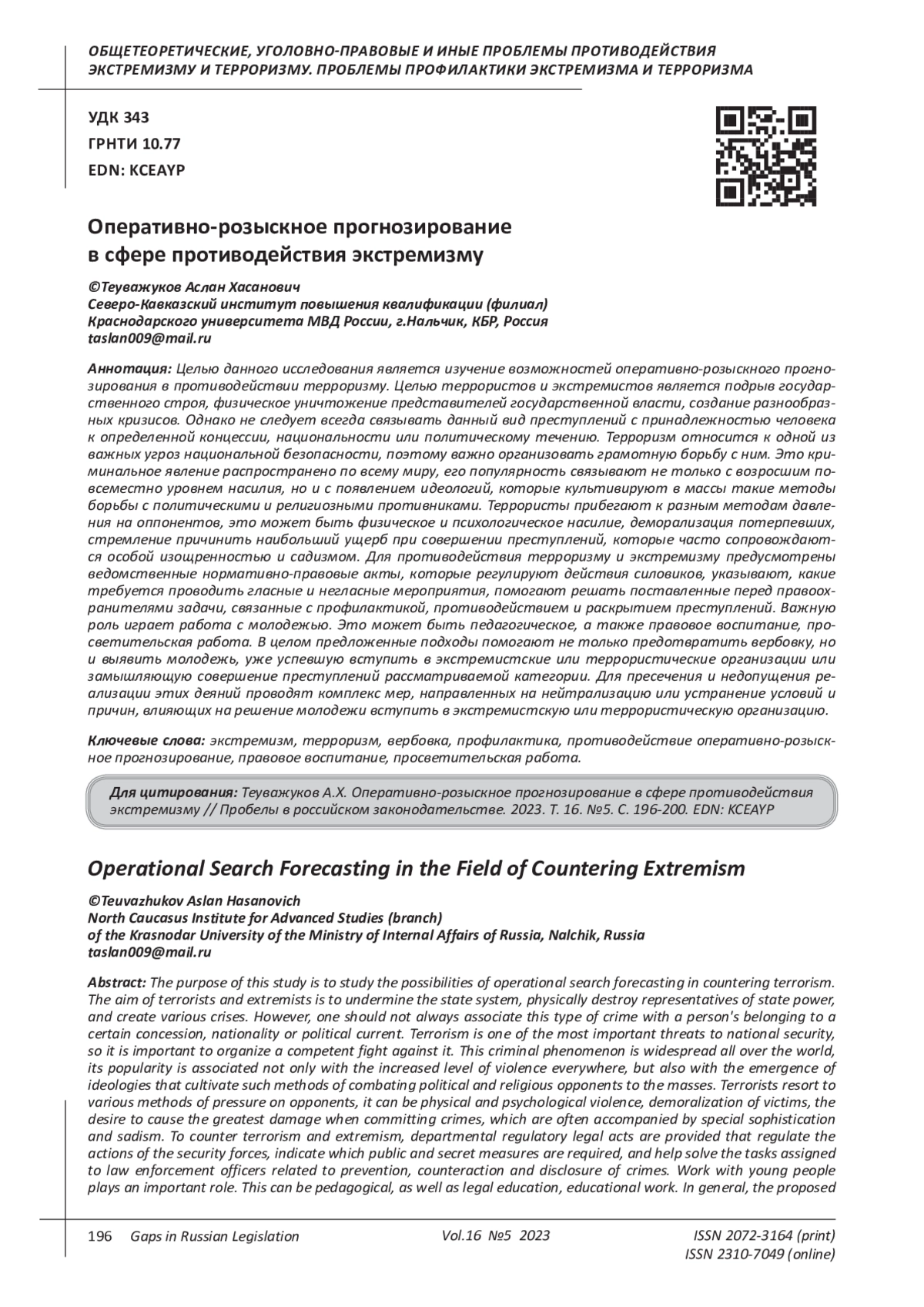 1. Гедугошев Р.Р., Корсаков Ю.В., Абазова М.В. Основные направления противодействия терроризму и экстремизму в современных условиях // Журнал прикладных исследований. 2021. № 5-2. С. 185-189. EDN: ISACJB