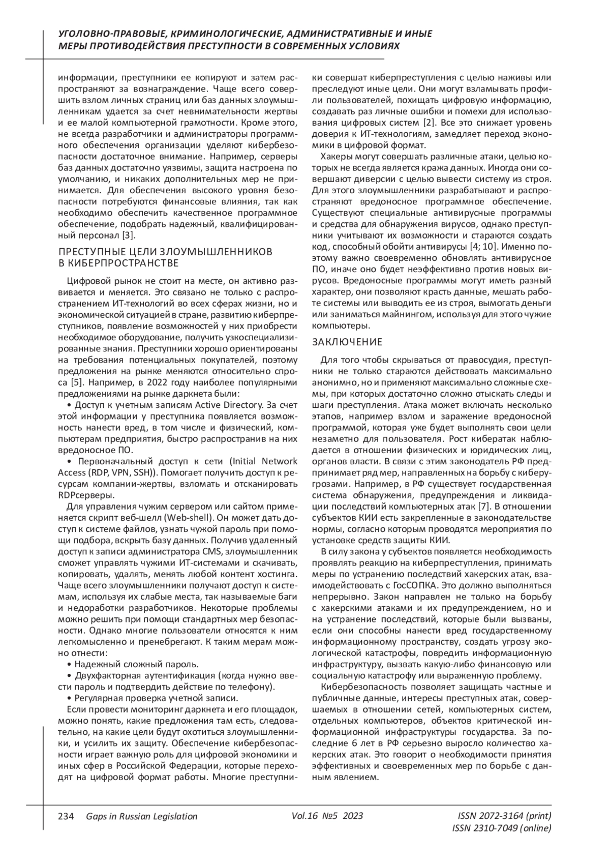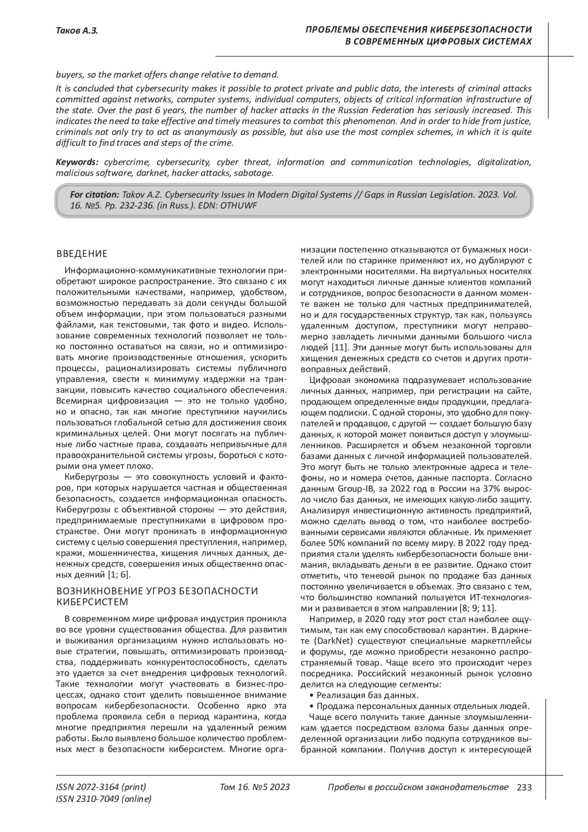 6. Кириленко В.П., Алексеев Г.В. Киберпреступность и цифровая трансформация // Теоретическая и прикладная юриспруденция. 2021. № 1. С. 39-53. EDN: UDZCMU