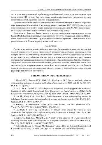 1. Chawla N.V., Bowyer K.W., Hall L.O., Kegelmeyer W.P. Smote: synthetic minority over-sampling technique. Journal of artificial intelligence research. 2002. Vol. 16. Pp. 321-357. DOI: 10.1613/jair.953