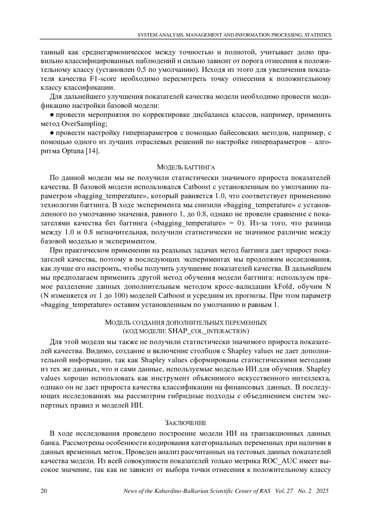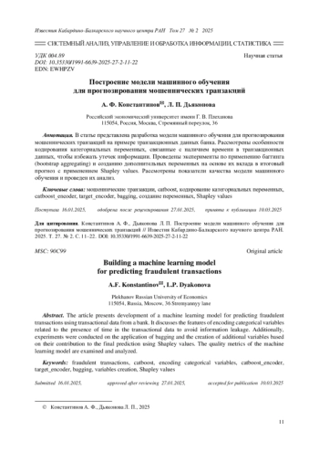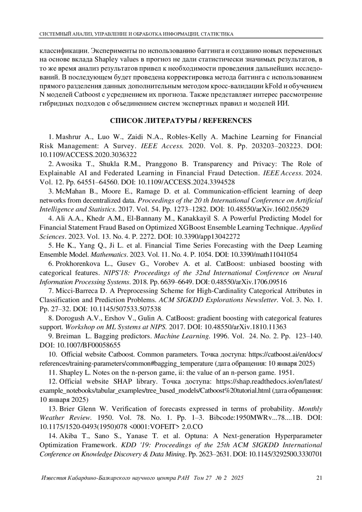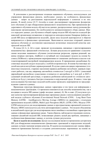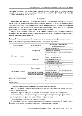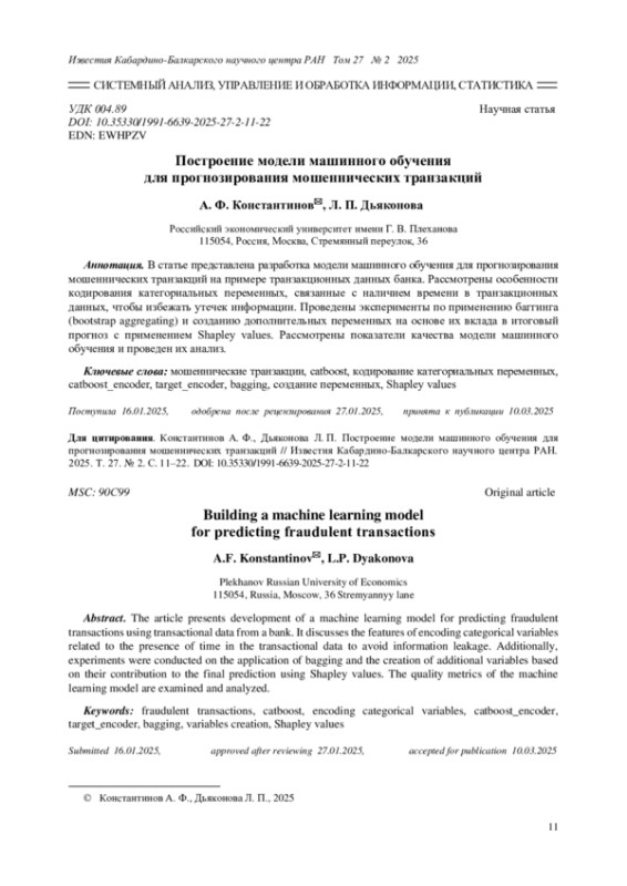 КОНСТАНТИНОВ А. Ф., ДЬЯКОНОВА Л. П. ПОСТРОЕНИЕ МОДЕЛИ МАШИННОГО ОБУЧЕНИЯ ДЛЯ ПРОГНОЗИРОВАНИЯ МОШЕННИЧЕСКИХ ТРАНЗАКЦИЙ // ИЗВЕСТИЯ КАБАРДИНО-БАЛКАРСКОГО НАУЧНОГО ЦЕНТРА РАН. 2025. ТОМ 27 № 2