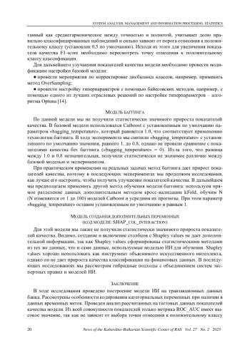 В статье представлена разработка модели машинного обучения для прогнозирования мошеннических транзакций на примере транзакционных данных банка. Рассмотрены особенности кодирования категориальных переменных, связанные с наличием времени в транзакционных данных, чтобы избежать утечек информации. Проведены эксперименты по применению баггинга (bootstrap aggregating) и созданию дополнительных переменных на основе их вклада в итоговый прогноз с применением Shapley values. Рассмотрены показатели качества модели машинного обучения и проведен их анализ.