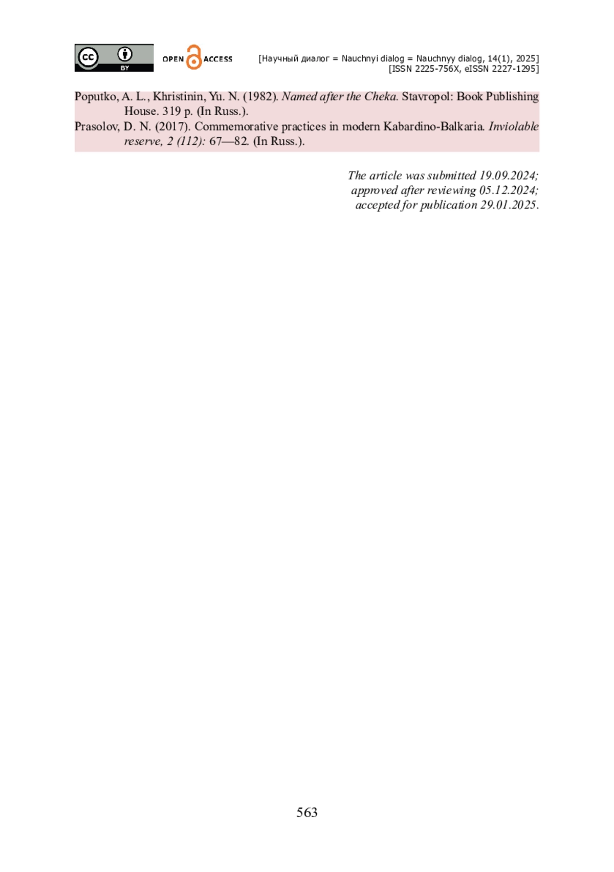 14. Прасолов Д. Н. Коммеморативные практики в современной Кабардино-Балкарии / Д. Н. Прасолов // Неприкосновенный запас. - 2017. - № 2 (112). - С. 67-82.