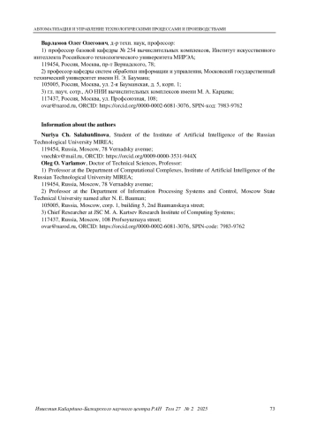 4. 	Varlamov O.O., Chuvikov D.A., Lemondzhava V.N. et al. A software package supporting decision making on the safety of thermolabile blood components // Biomedical Engineering. 2022. Vol. 55. No. 5. Pp. 355-359. DOI: 10.1007/s10527-022-10135-0 EDN: ICRHIB